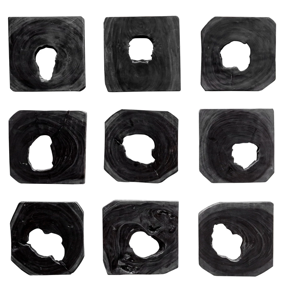 This Set Of 9 Wood Wall Art Features Cross Sections Of Solid Natural Suar Wood Finished In A Smooth Ebony Stain. Because Each Is Individually Handcrafted, Natural Variation Will Occur From Piece To Piece.