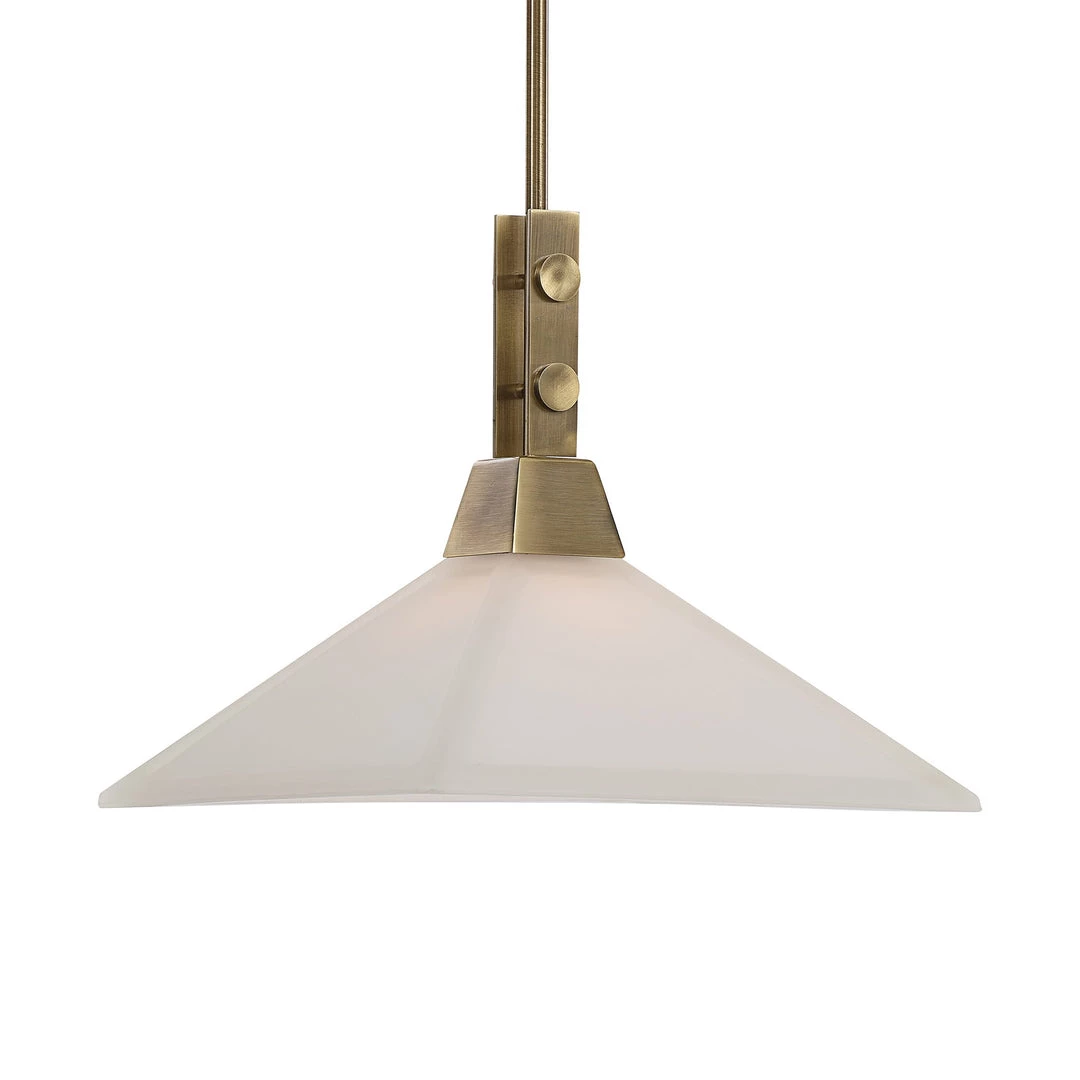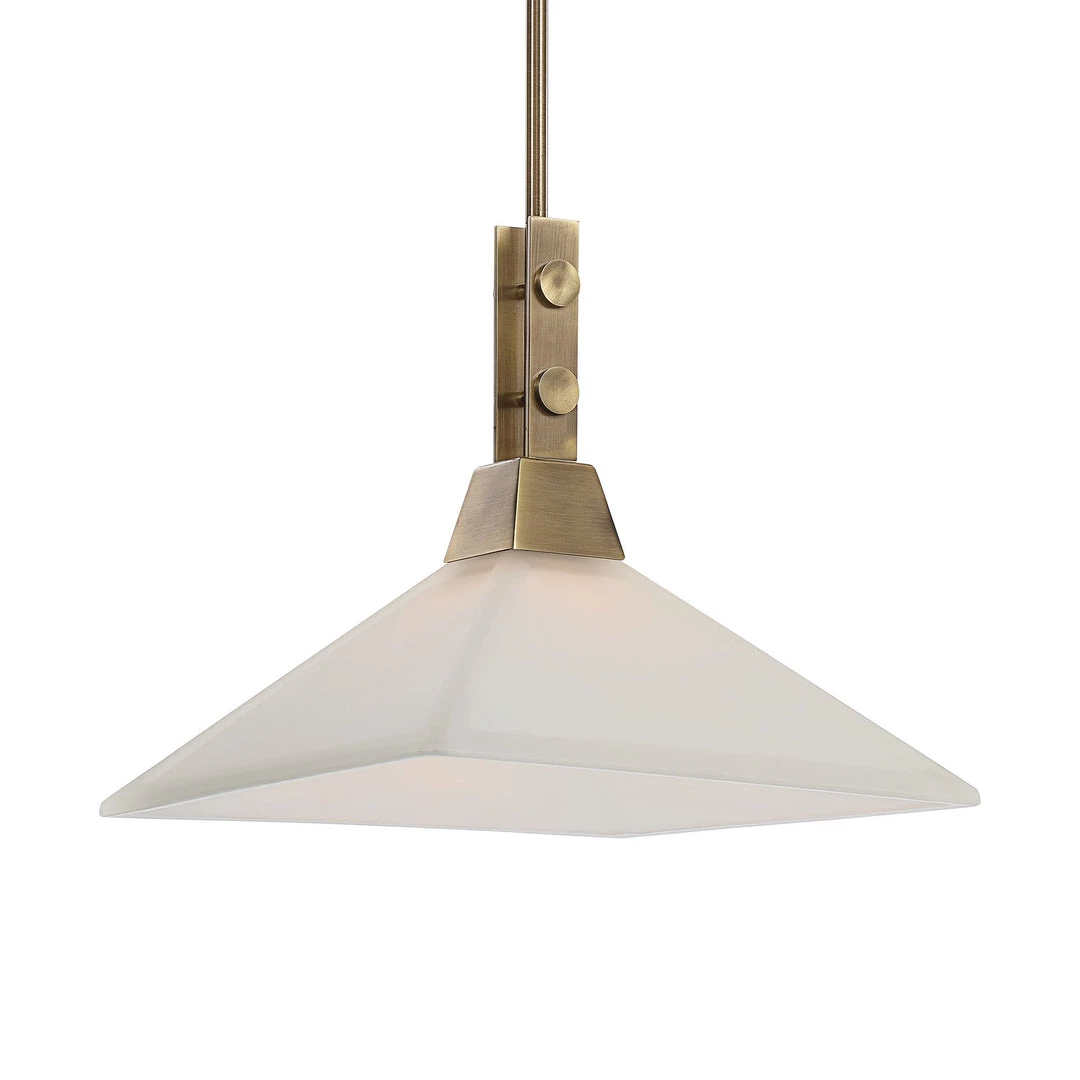 Enriched Industrial Style With A Hint Of Craftsman Lines Bring Together This Elegant Pendant Finished In Warm Aged Brass And Etched White Frosted Glass Shades. With 1-100 Watt Max, Edison Socket And Includes 15′ Wire, 3-12″ Stems And 1-6″ Stem For Adjustable Installation.