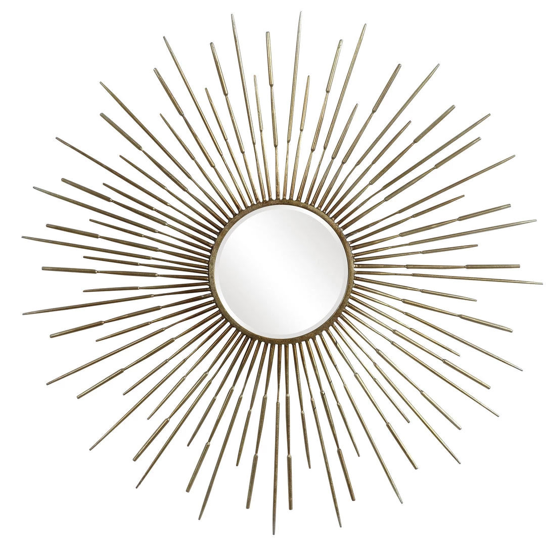 Inspired By Mid-century Designs, This Starburst Mirror Is Finished In An Antiqued Gold Leaf And Features A 1″ Bevel.