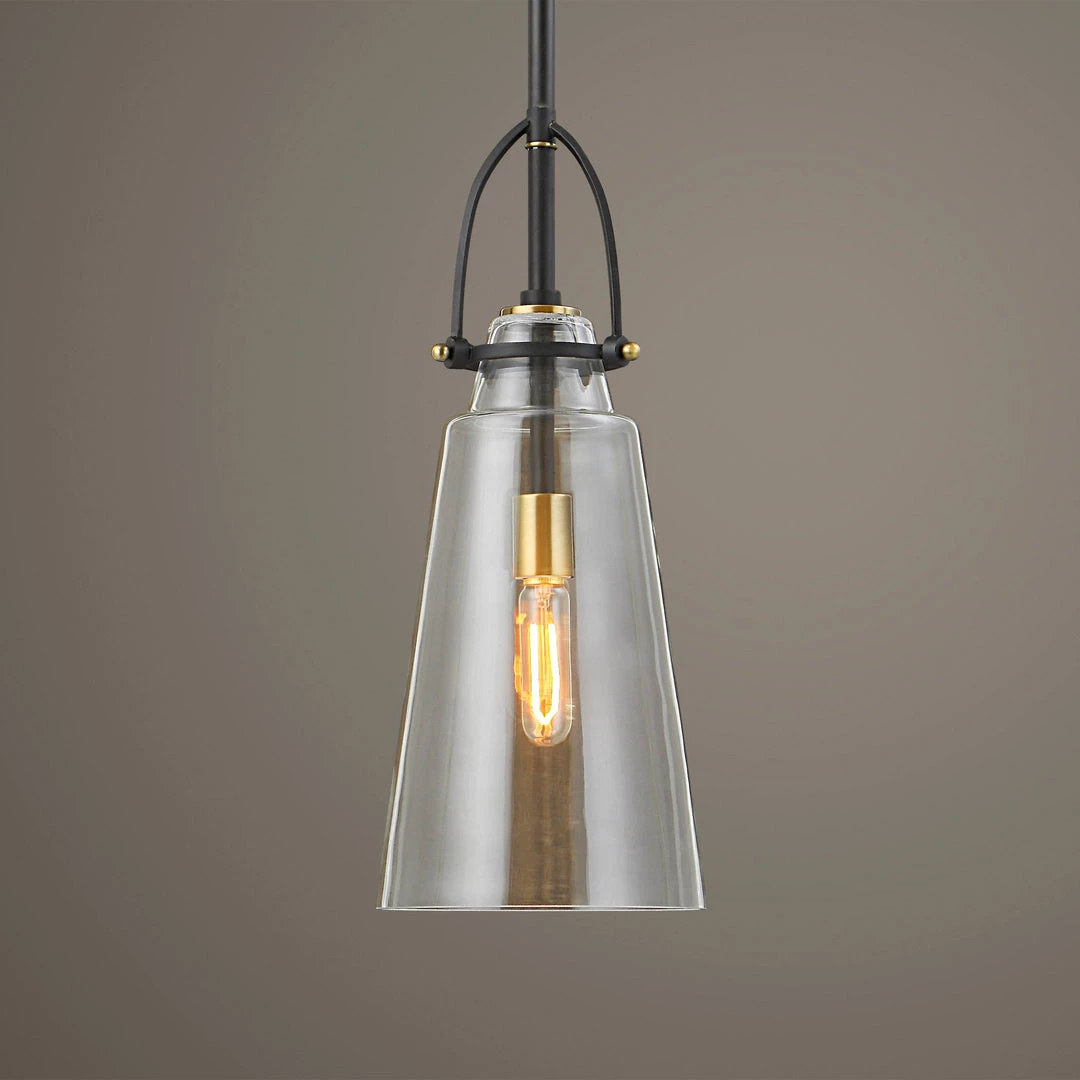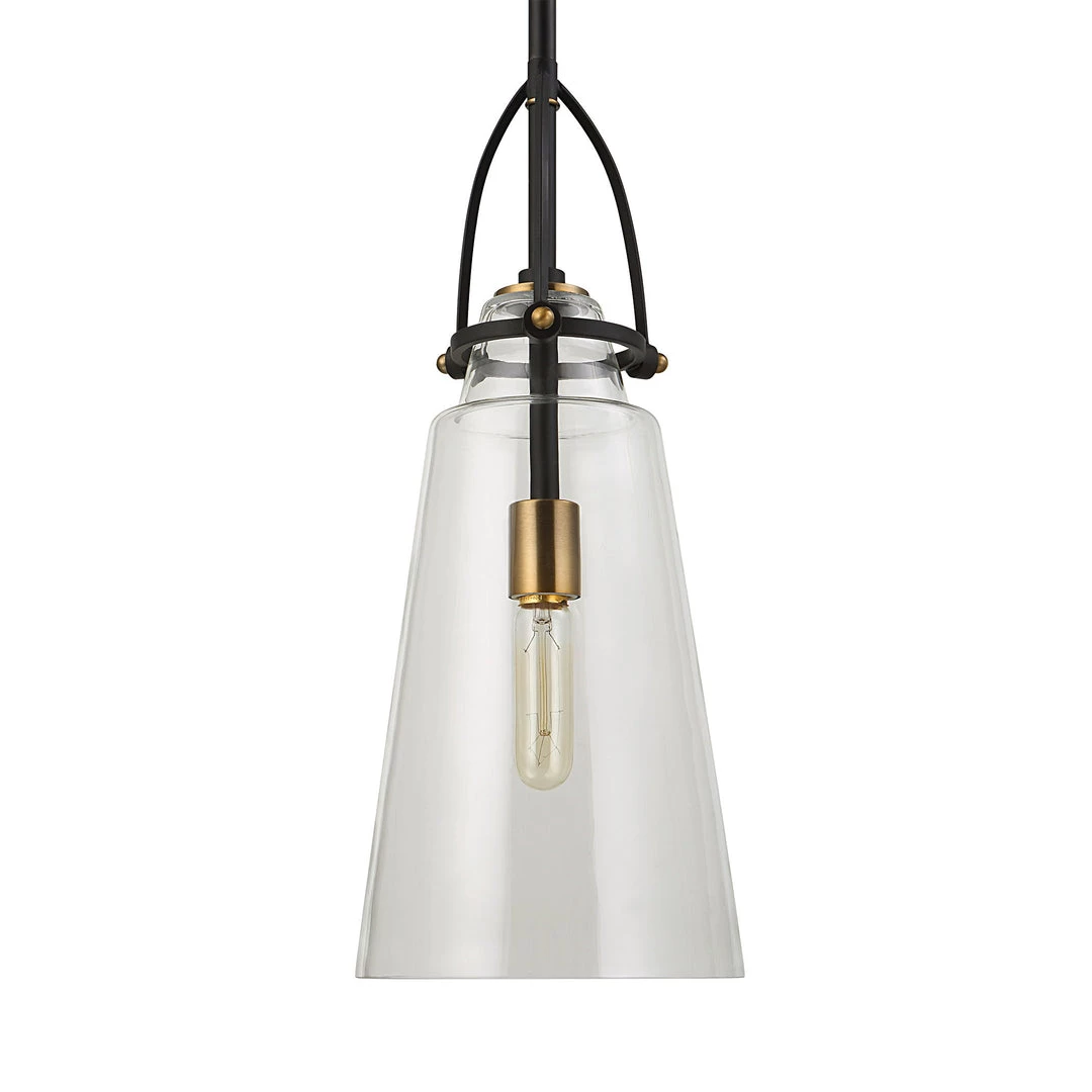 This Timeless 1 Lt. Mini Pendant Is Finished In Black With Antique Brass Accents Featuring Clear Glass And A Touch Of Rustic & Industrial Design. With 1-60 Watt Max, Edison Socket. Supplied With 15′ Wire, And 3-12″ Stems & 1-6″ Stem For Adjustable Installation.