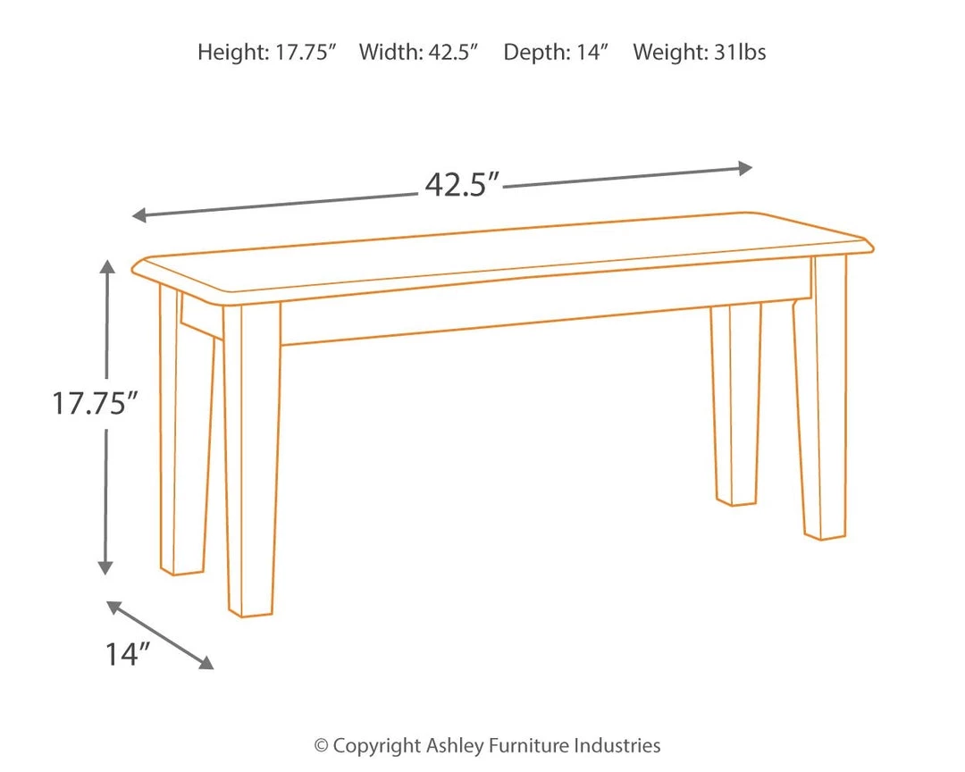 Versatile bench serves up easy elegance, family style. The rich, rustic finish and simple profile are always in vogue, whether your aesthetic is vintage, country or traditional. Dining room bench comfortably seats two.