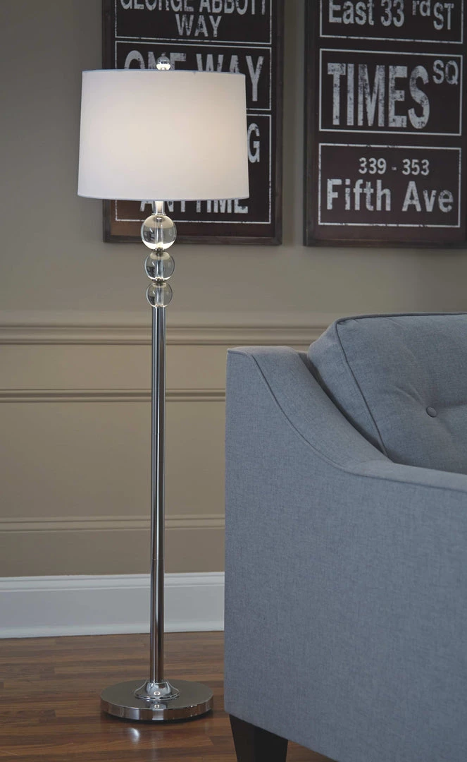 Have a ball beautifying your space with this designer floor lamp. If you’re looking for a clean, ultra-contemporary aesthetic, you’re sure to find this floor lamp’s blend of crystal and chrome-tone metal so delightful. Simply chic drum shade is the perfect complement.