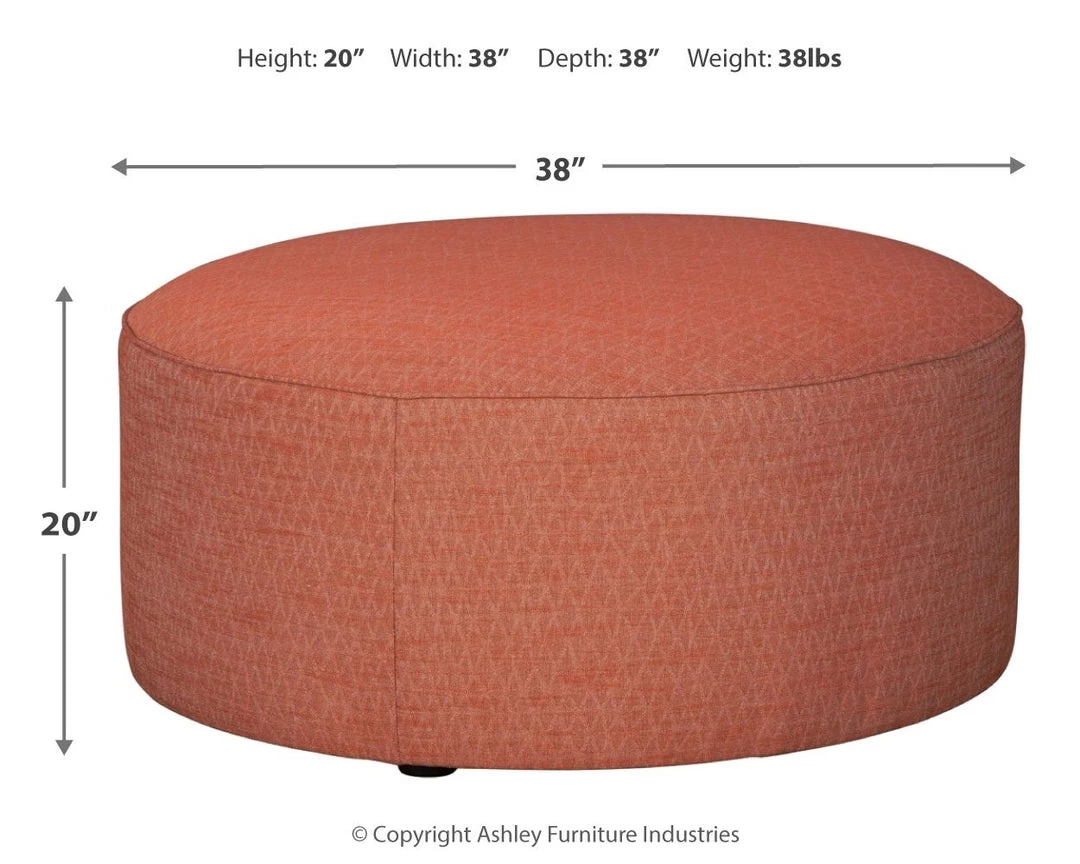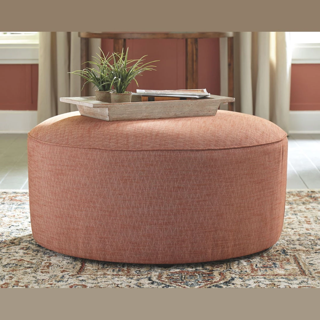 Cushy enough for soothing comfort yet firm enough to support a serving tray, this round oversized ottoman is a pleasure to have around, indeed. Sporting a terracotta-tone upholstery with a subtle diamond pattern, this designer ottoman is sure to round out your space in style.
