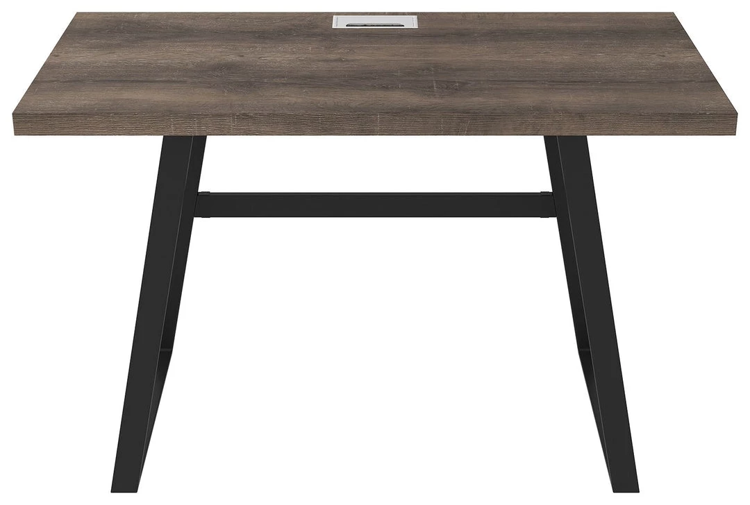 Clean-lined and contemporary (but far from stark), this home office desk is a fresh style awakening. Its sleek scale makes it a natural fit for smaller spaces. Effortlessly combining modern farmhouse design with urban attitude, the replicated weathered oak grain plays perfectly with the chic-yet-earthy aesthetic.