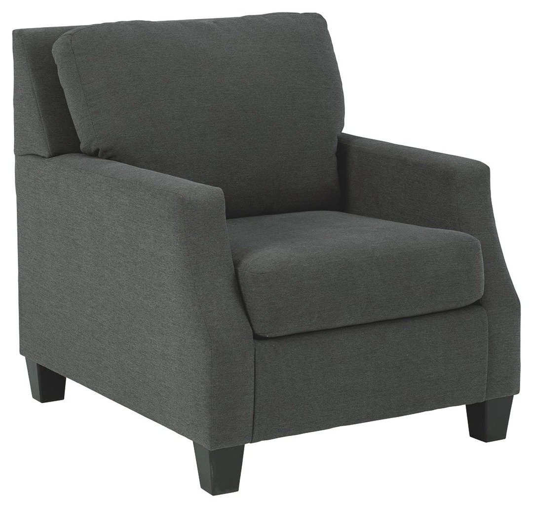 Dressed to impress with distinctive cutaway arms, this chair is an above-and-beyond choice for your fashionable abode. Wrapped in a soft flatwoven charcoal fabric that’s naturally on trend, this designer chair is sure to suit contemporary spaces and modern farmhouse places—and look right at home with classic and eclectic furnishings. That’s the beauty of a great transitional piece of furniture. That’s the beauty of this brilliantly done chair.