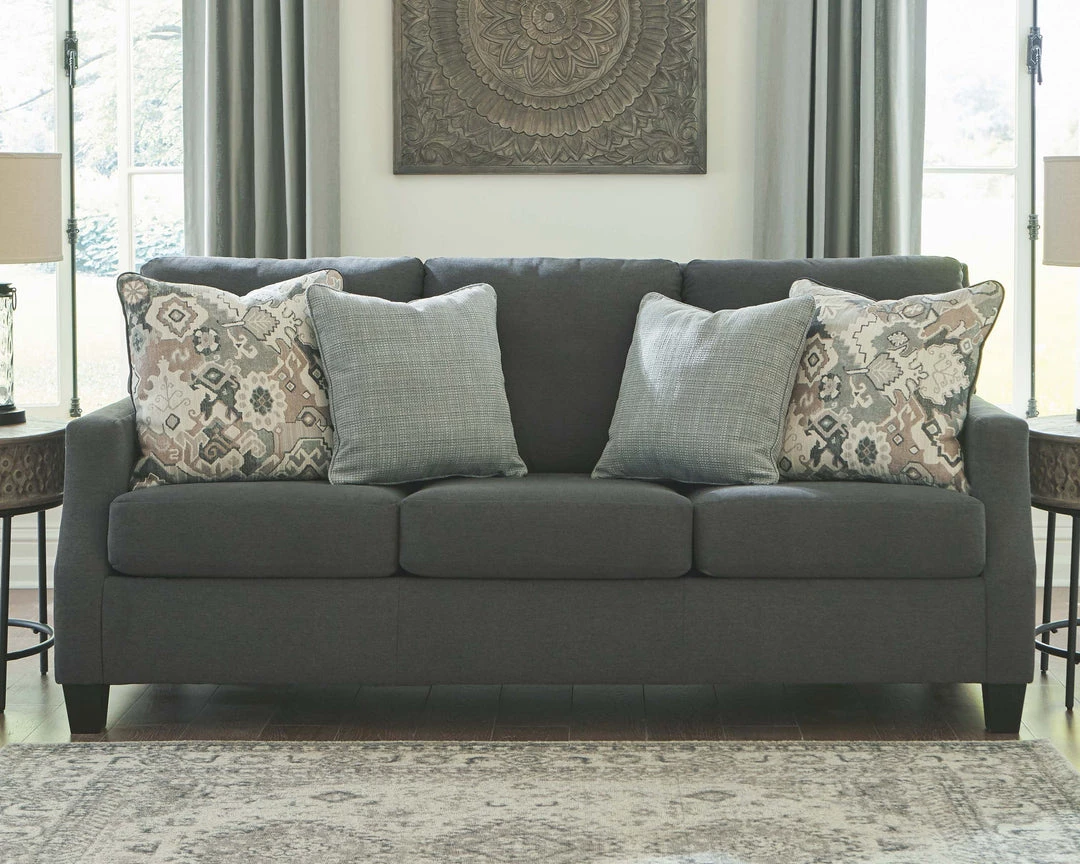 Dressed to impress with distinctive cutaway arms, this sofa is an above-and-beyond choice for your fashionable abode. Wrapped in a soft flatwoven charcoal fabric that’s naturally on trend, this designer sofa is sure to suit contemporary spaces and modern farmhouse places—and look right at home with classic and eclectic furnishings. That’s the beauty of a great transitional piece of furniture. That’s the beauty of this brilliantly done sofa.