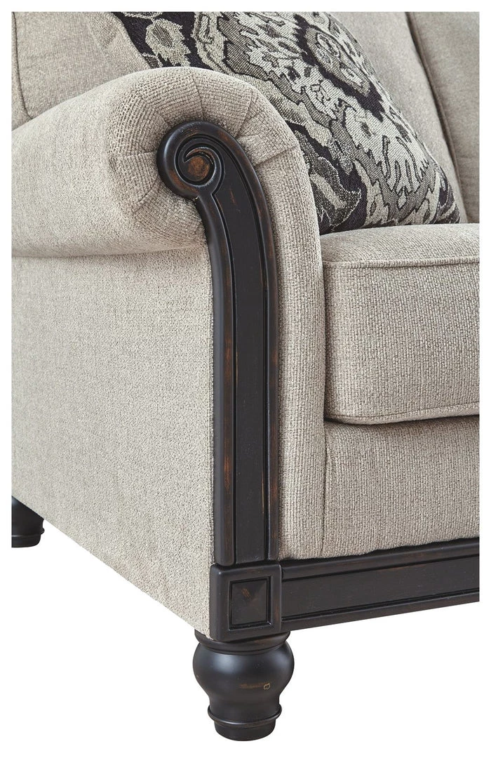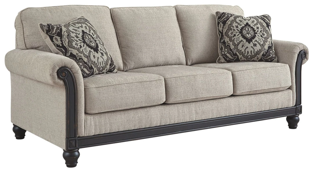 If you’re one to embrace new traditions, behold the beauty of this brilliantly styled sofa. Giving stately elegance a sense of newfound flair, it’s dressed to impress with a distressed black exposed rail that complements today’s more relaxed lifestyles. Tailored elements like a light and lovely linen-weave upholstery, romantic roll arms and turned bun feet make this updated classic complete.