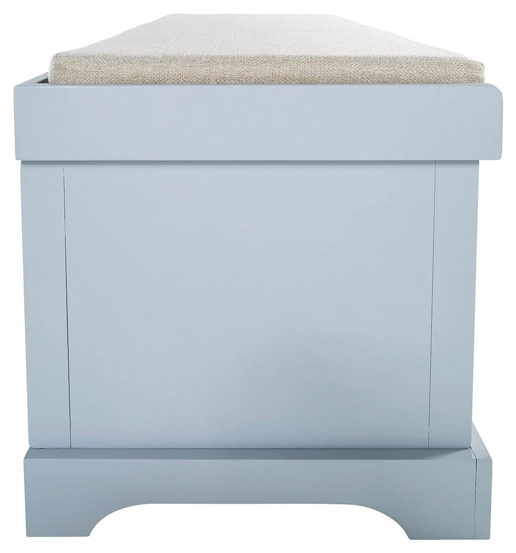 From providing spare seating to storing shoes and more, this storage bench is a must-have in any abode. Two open cubbies accommodate woven wicker baskets (included) to store everything from blankets to toys, while the upholstered seat cushion is filled with comfortable padding for extra support.