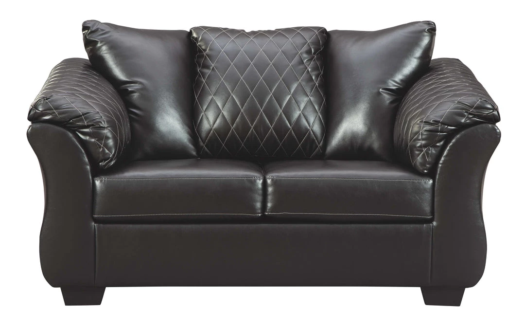 Great design draws inspiration from various places, and this loveseat is no exception. Diamond-stitched pattern seen in high-end handbags and luxury car interiors is simply irresistible on this sumptuous, generously padded seating experience. Durable, easy-care leather alternative delivers the look you crave at a price that’s decidedly easy on your purse.