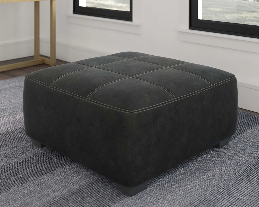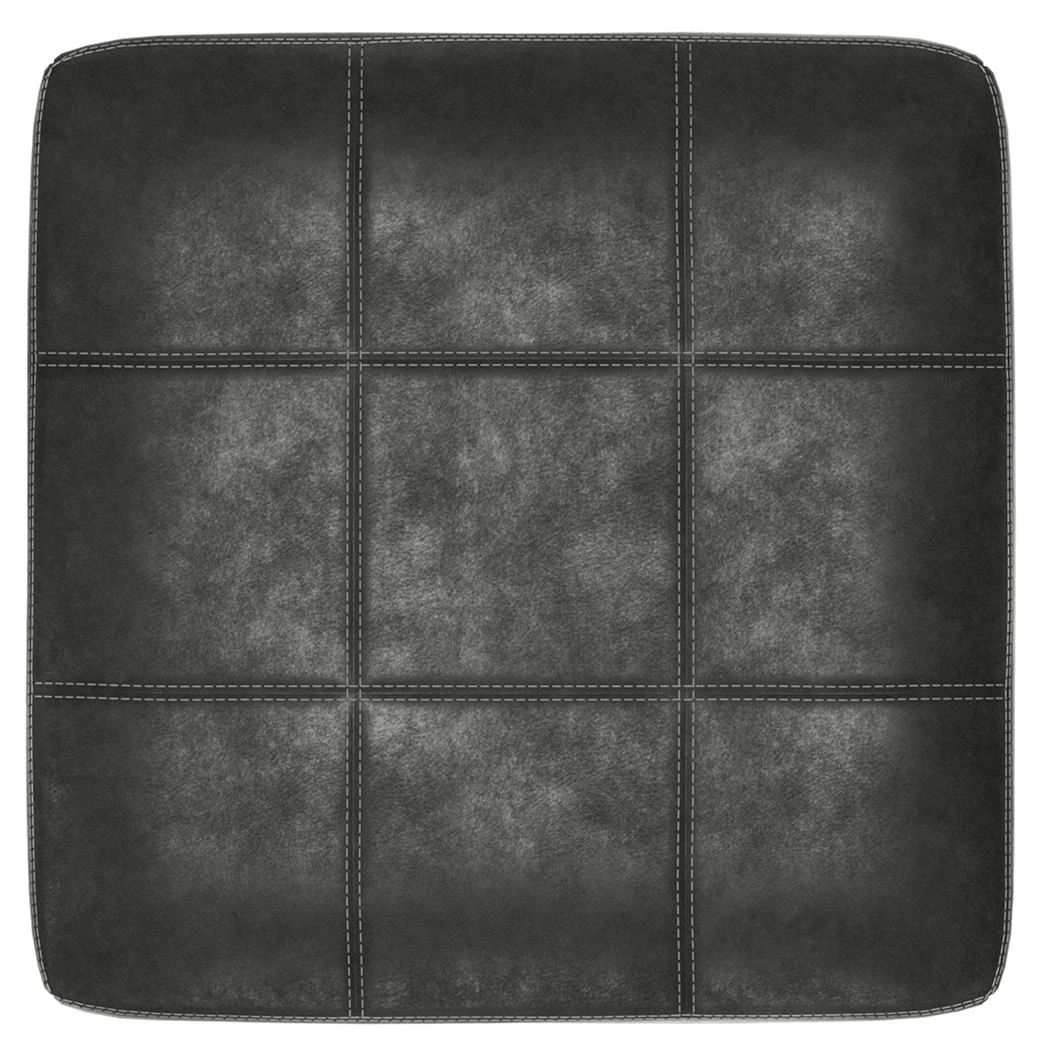 Love the look of leather but long for the warm feel of fabric? Rest assured, this oversized ottoman fits the bill beautifully. Wrapped in a fabulous faux leather beautified with windowpane stitching, this handsome square ottoman is sure to be the centerpiece of your relaxation station. Oversized scale means there’s room for everyone to kick up their heels. Firmly cushioned design makes it a practical coffee table alternative, when topped with a tray.