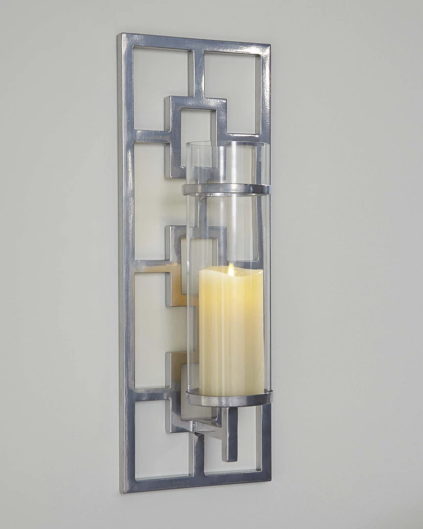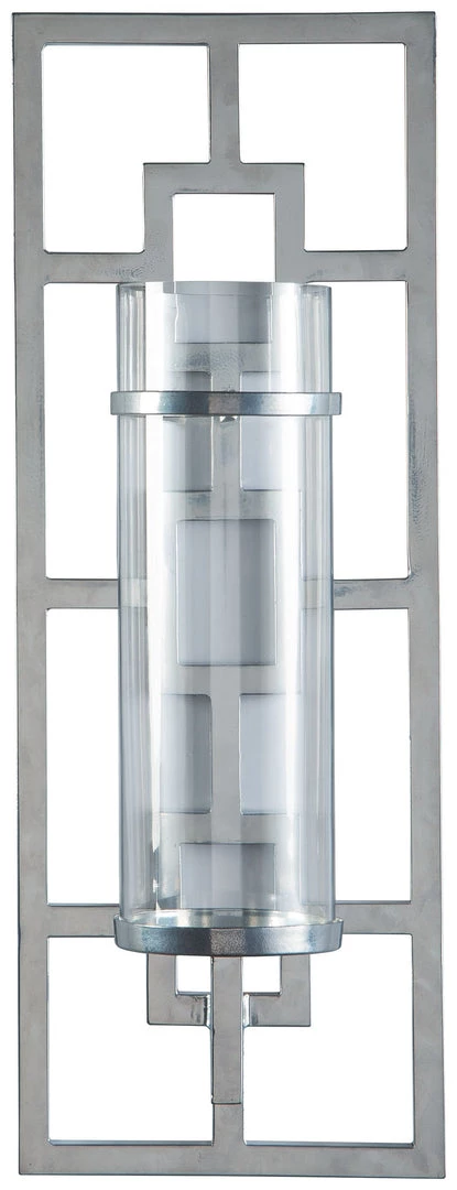 Delight in the beauty and sheer simplicity of this wall sconce. Perfect on its own, it’s even better by candlelight given its silvertone metal frame that casts a dazzling reflection.