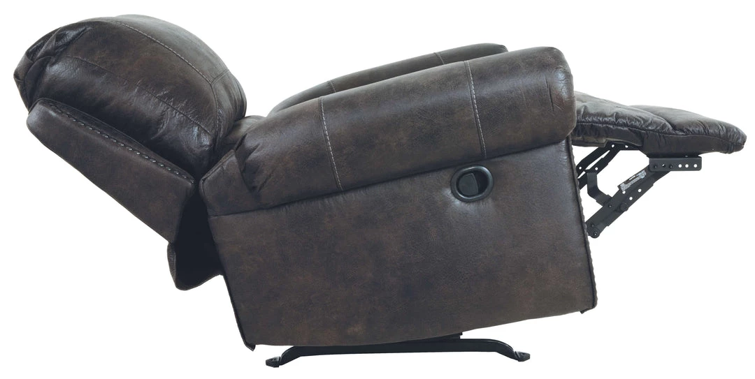 Revel in the ruggedly handsome look of leather at a fraction of the cost with this stylish recliner. Inspired by the rough and tumble beauty of the Southwest, it sports a weatheredfaux leather crafted for warmth, comfort and everyday living. Touch of nailhead trim adds perfect punch of character.