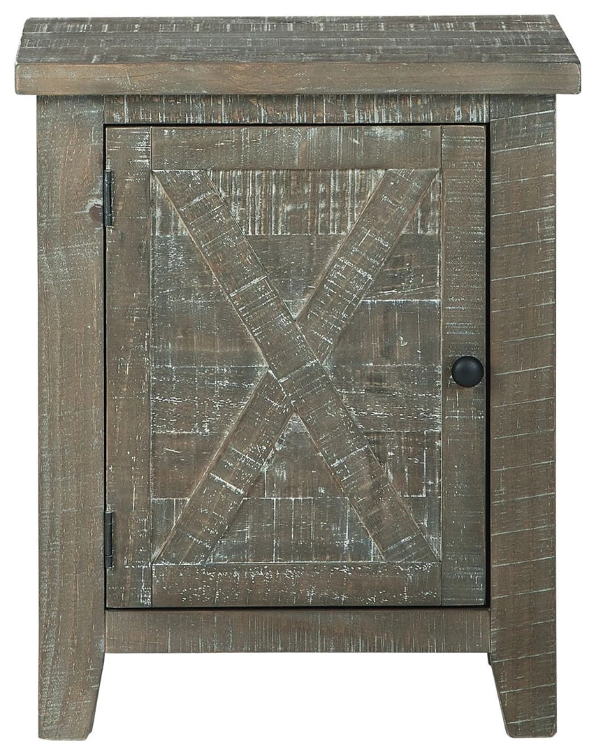 Wonderfully versatile, this accent cabinet with distressed gray finish brings form and function to virtually any space in your home. A crossbuck pattern door front adds a vintage touch to any room, making this a simple and stylish storage space.