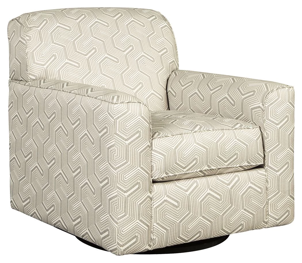 Merging an eye-catching geometric pattern with an ultra-soft and soothing granite gray palette, this swivel accent chair is brilliantly contemporary, yet not overly bold. Rest assured, this sumptuous chair’s 360-degree swivel will make your living space that much more livable.
