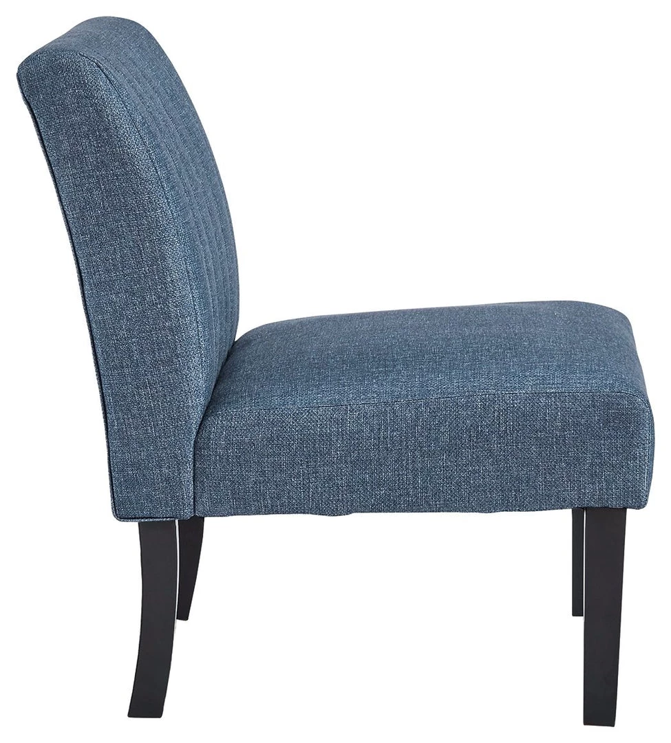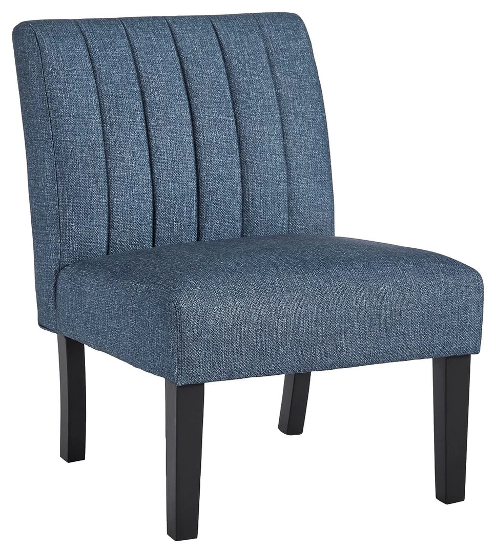 This fashion-forward accent chair adds a cool vibe to your home. The armless design and channel stitched back is perfect for living spaces that need a spark of excitement. Bringing just enough pizazz to liven a space in a fresh, contemporary way, this accent chair is an especially smart choice for small spaces.
