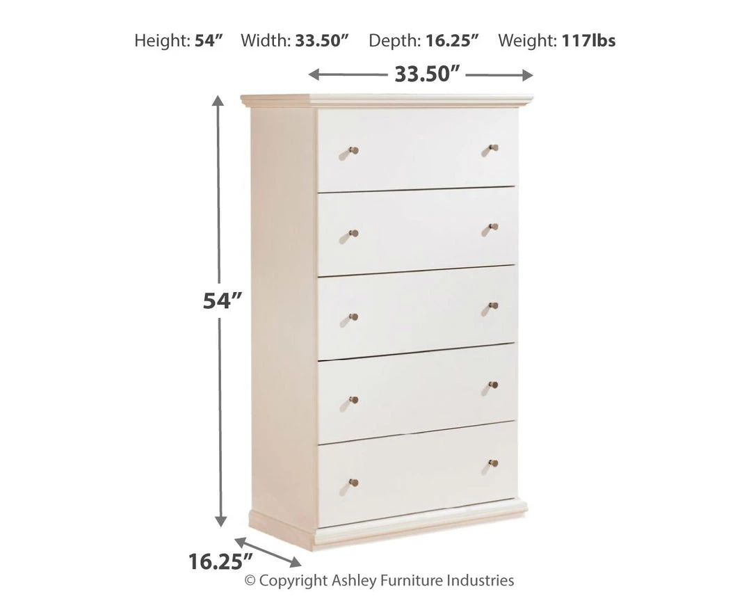 Bostwick – White – Five Drawer Chest