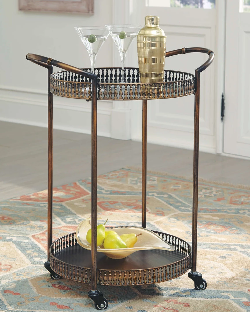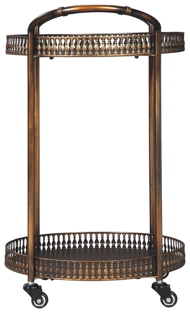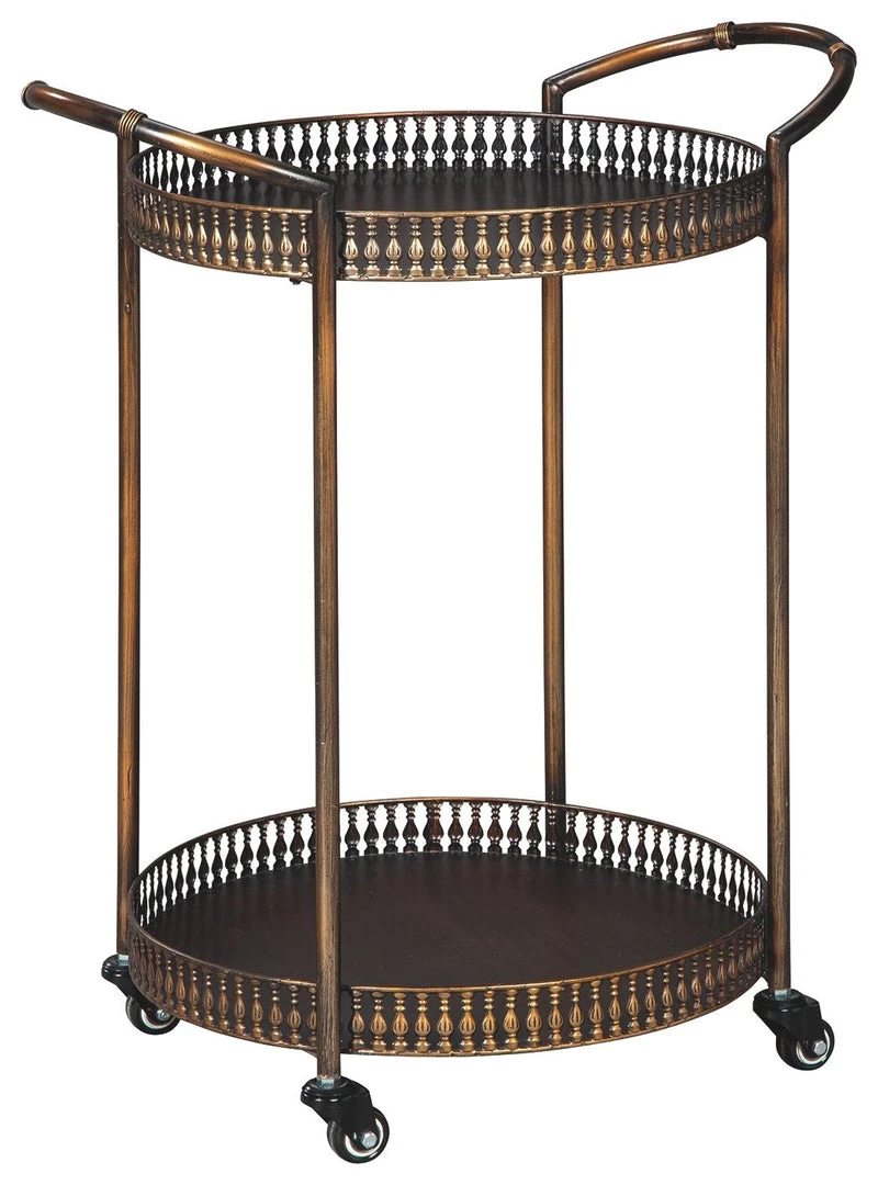 Whisk away your worries with this bar cart, which has plenty of room for spirits, glassware, and other bar essentials. Curved metal handles and caster wheels make for easy maneuverability, while the bronze-tone finish adds a hint of refinery in any room. What a showstopper piece that charms with a “less is more” aesthetic.