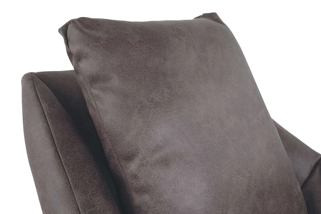 This accent chair is the ultimate statement piece for a cool crash pad. Goldtone metal frame with X base design is so striking. Sumptuously plush, this accent chair’s chic gray faux leather upholstery is luxury made for everyday living.