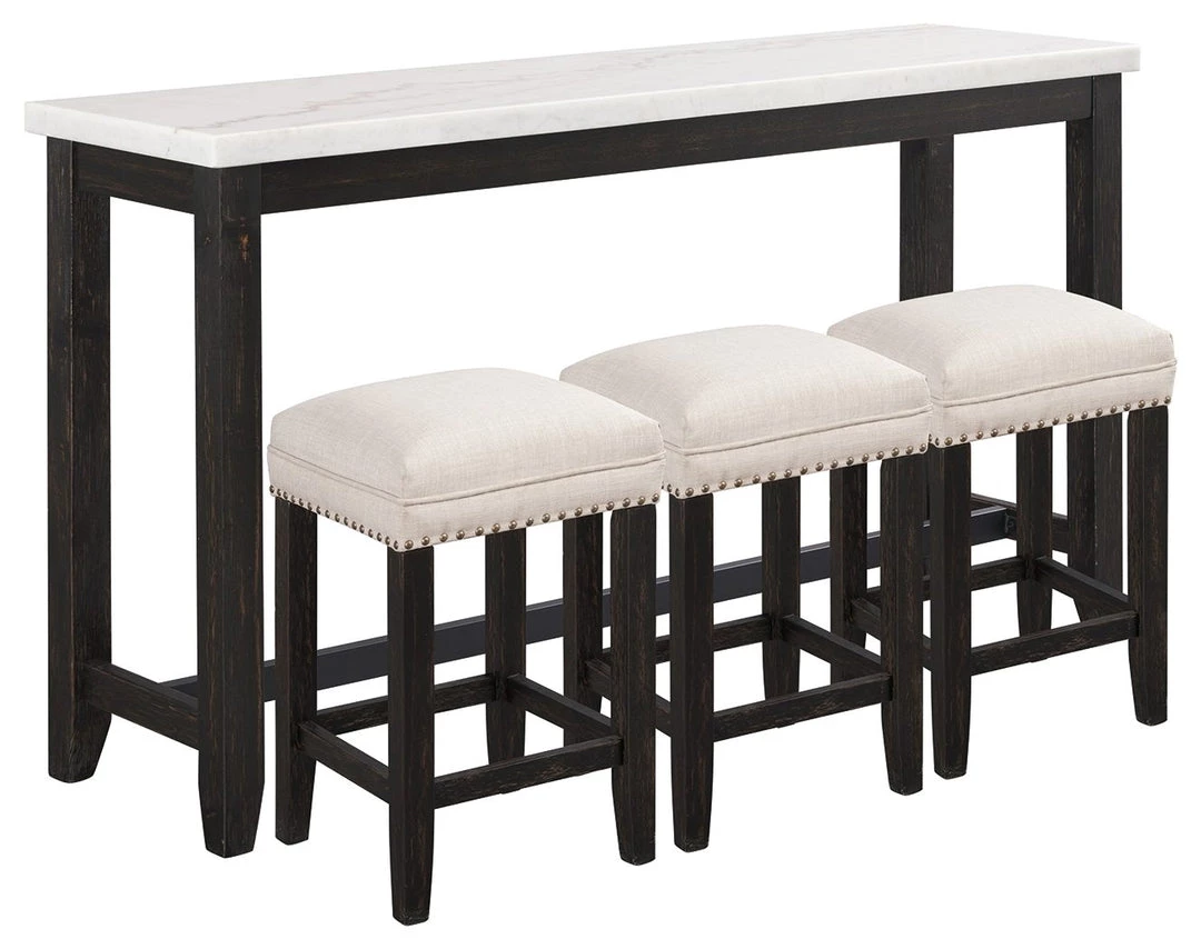 If you love clean, contemporary design crafted for comfortable everyday living, the Anchorville dining room table set is so pleasing to the palette. The counter height table and three comfy stools serve up casually cool character. This set’s ultra-chic, sleek profile and natural marble top feel fresh and contemporary. Neutral seat upholstery with nailhead trim detailing brings added flair. Adding to its beauty, the marble top’s color variations, fissures, mineral deposits and veining are naturally formed and are not defects.
