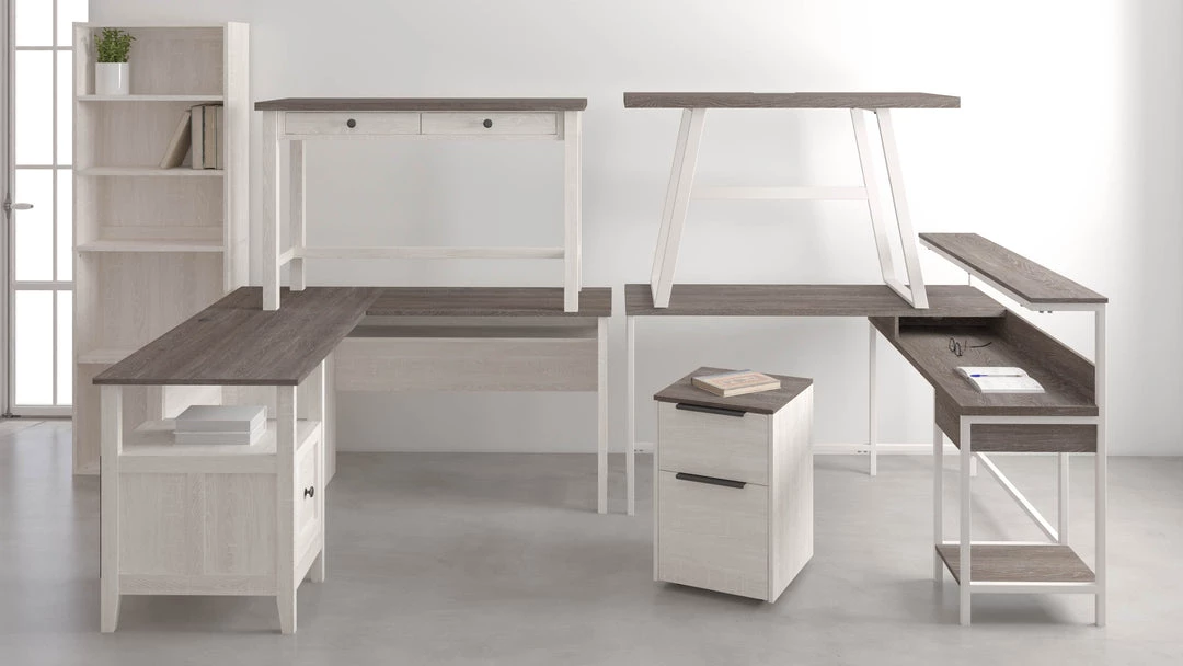 More than just a beauty to behold, this home office bookcase is designed to raise your productivity by packing more work area into less space. Sporting a replicated gray wood grain with a weathered effect, it’s ready to take a cool stance for modern farmhouse style. Pair with the desk or file cabinet (each sold separately) for a well-organized home office.
