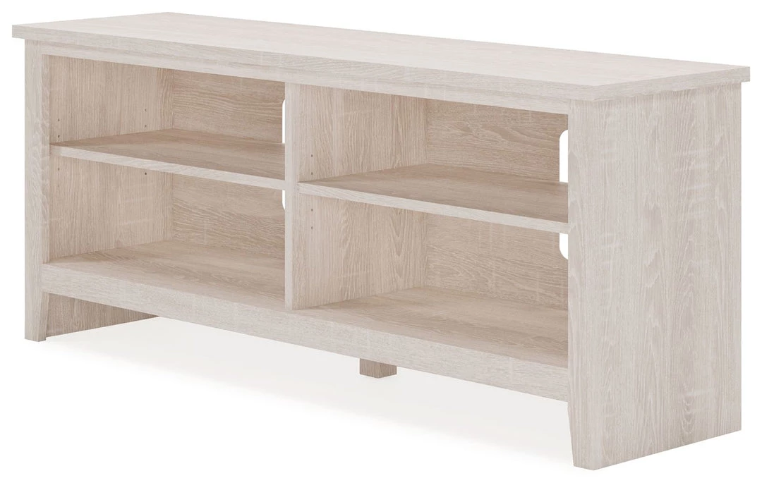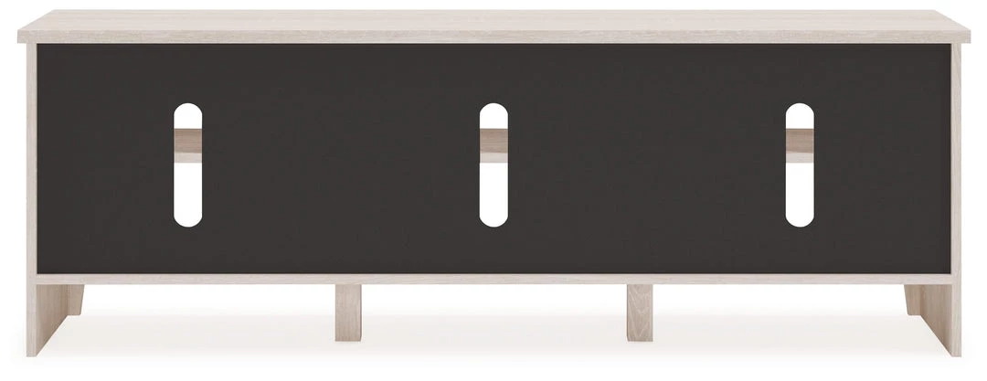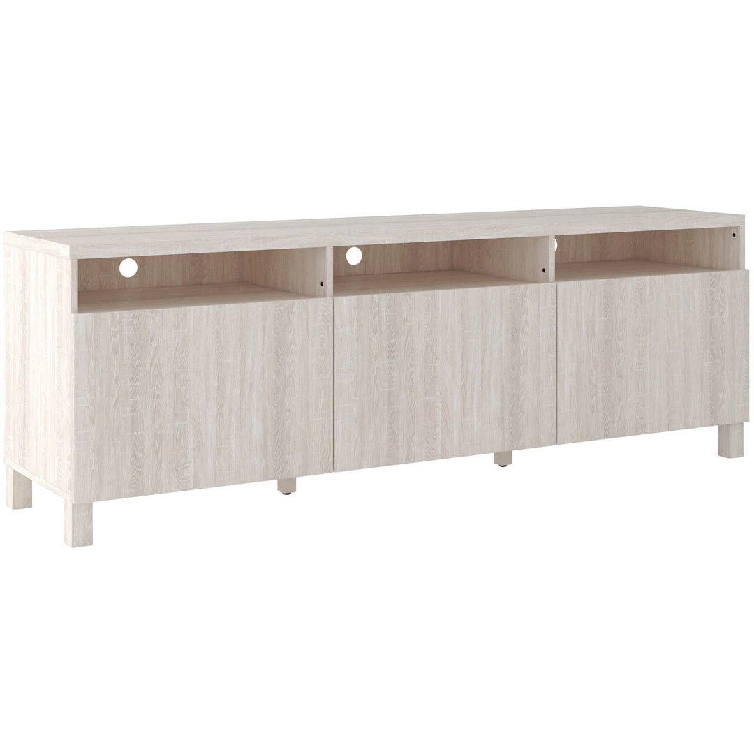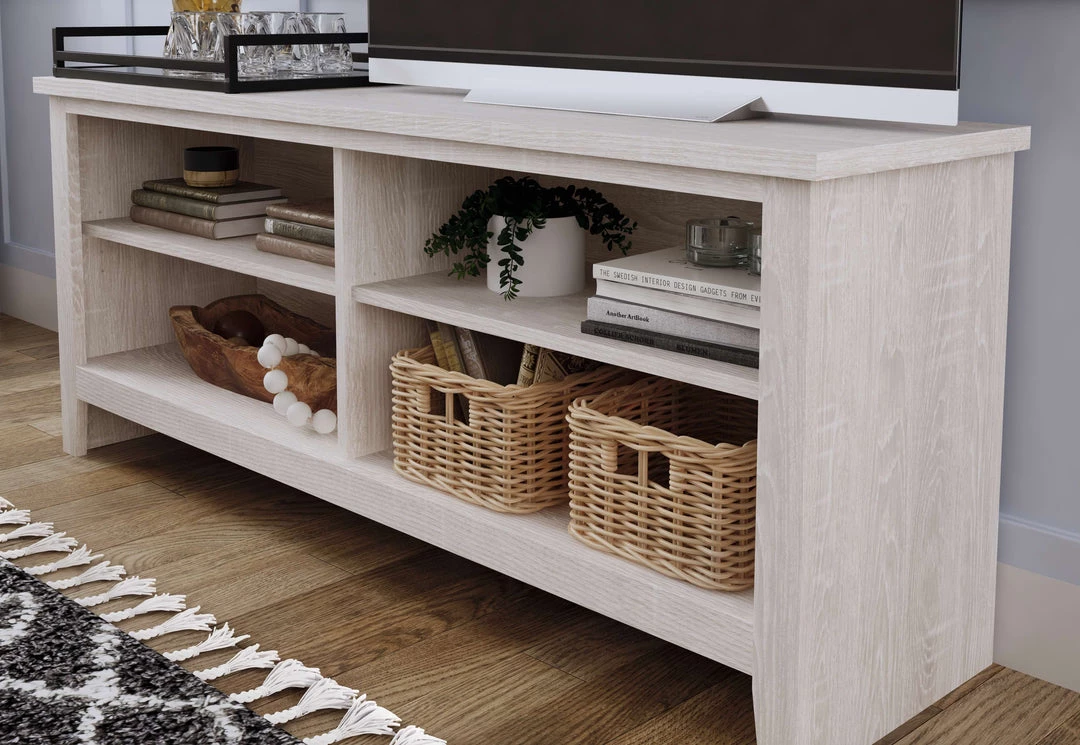 With its minimalist charm, this TV stand is right in tune with your relaxed approach to high style. Beautifully made to accommodate your media equipment, it’s well equipped with a flexible, open-concept design and cutouts for wire management that enhance the clean-lined aesthetic. The look is ideal for modern farmhouse and contemporary settings.