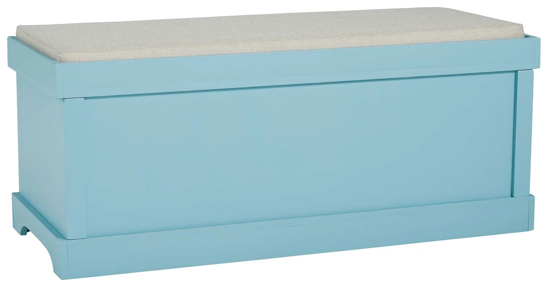 From providing spare seating to storing shoes and more, this storage bench is a must-have in any abode. Two open cubbies accommodate woven wicker baskets (included) to store everything from blankets to toys, while the upholstered seat cushion is filled with comfortable padding for extra support.