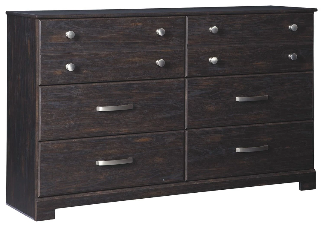 Dark brown replicated worn through paint finish. Large scaled satin nickel colored handles and knobs. Side roller glides for smooth operating drawers. Slim profile USB charger located on the back of the night stand tops. Large drawers provide ample storage space. Queen (67) and king (68) headboards feature a gray upholstered panel with button tufting details. Queen (65) and king (69) headboards can attach to a bolt-on metal bed B100-31 or B100-66 respectively. Queen (65) bookcase headboard is capable of attaching a full sized metal bolt on bed frame. King and queen storage footboards (54S, 56S) require the use of the B100-13 or B100-14 roll slats respectively. King poster bed requires the use of the king poster headboard posts (62). Safety is a top priority, clothing storage units are designed to meet the most current standard for stability, ASTM F 2057 (ASTM International). Drawers extend out to accommodate maximum access to drawer interior while maintaining safety.