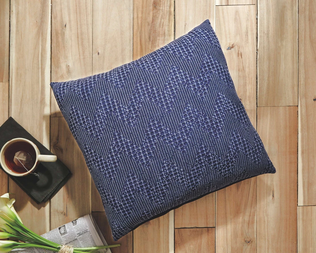 Make a subtle splash with this navy-colored throw pillow with washed jacquard design. Cottony soft cover feels every bit as good as it looks.