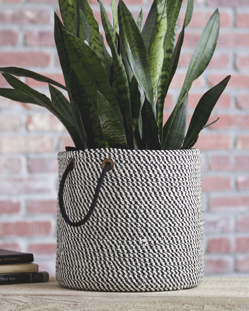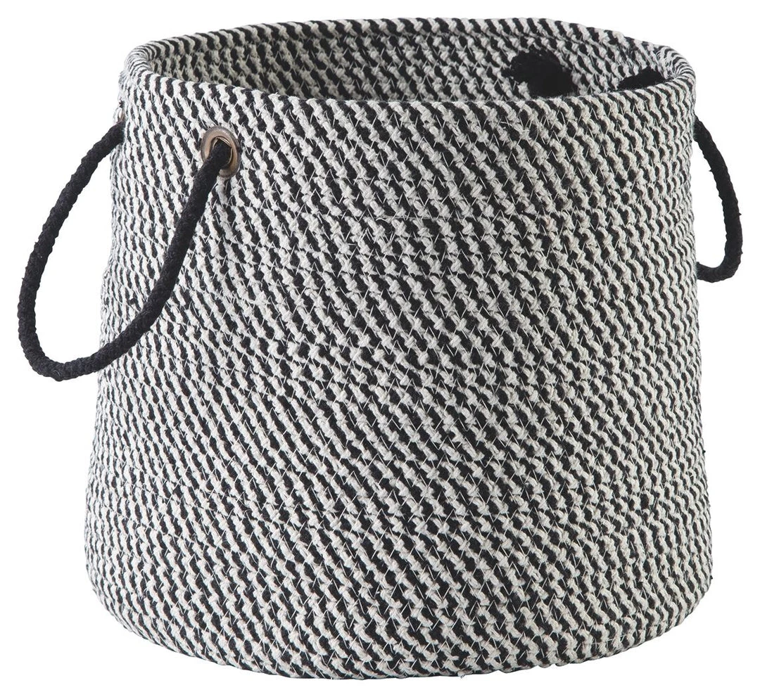 Clutter doesn’t stand a chance with this hand braided basket around. Pick it up by the braided handles and move it to where it’s needed most. It not only provides storage but it’s also stylish. Black and white design is timeless and teeming with cottony texture.