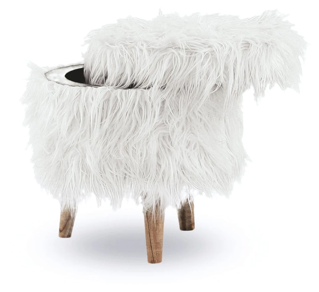 Put a charming modern spin on your ensemble with this chic storage ottoman. This fun loving boho-chic ottoman features a round-shaped faux fur fabric seat in white supported by four tapered natural wooden legs. The top can be removed to reveal a spacious compartment perfect for stowing away various household knick-knacks. Apart from seating and storage options, this stool also serves as a comfortable foot and leg rest and a stunning living room accent accessory.