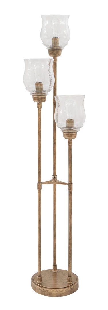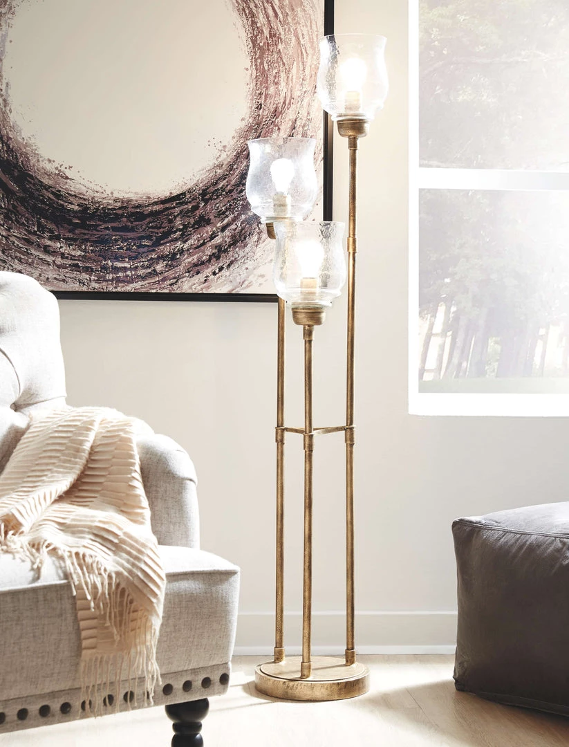 With this floor lamp, stand-up style is a no brainer with its goldtone metal and glass shades. Varying height bulbs cascade light for maximum impact beside an accent chair or mirror. No more fumbling around in the dark—the easy foot switch simplifies adding extra light to the room whenever you need it.