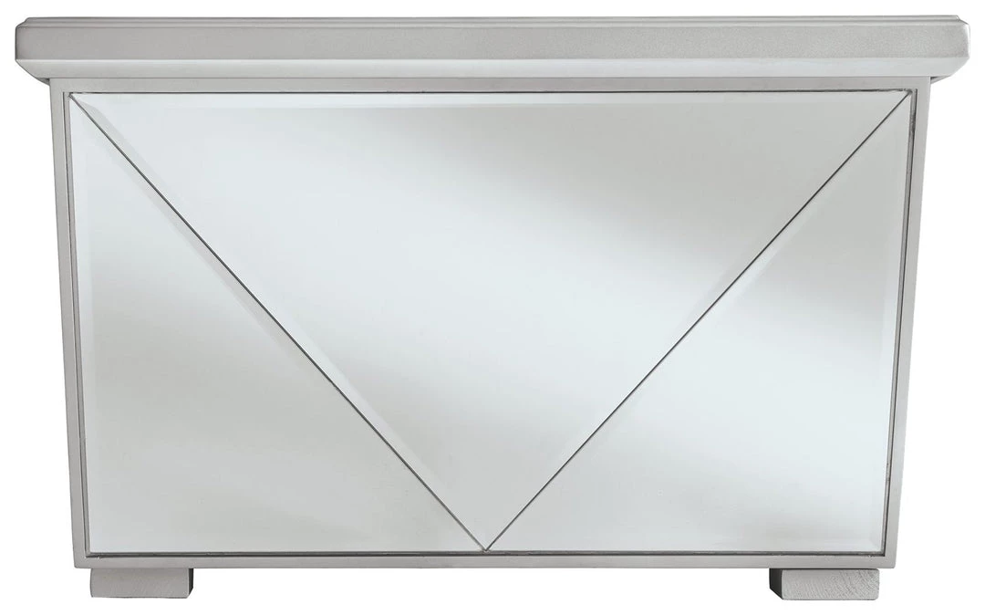 Absolutely fabulous interpretation of Hollywood regency style. This bedazzled coffee table is a diva in the very best sense of the word. Embellished with inset rhinestones, beveled mirrors and a sparkling silvertone finish, this table’s geometric design dares to be different.