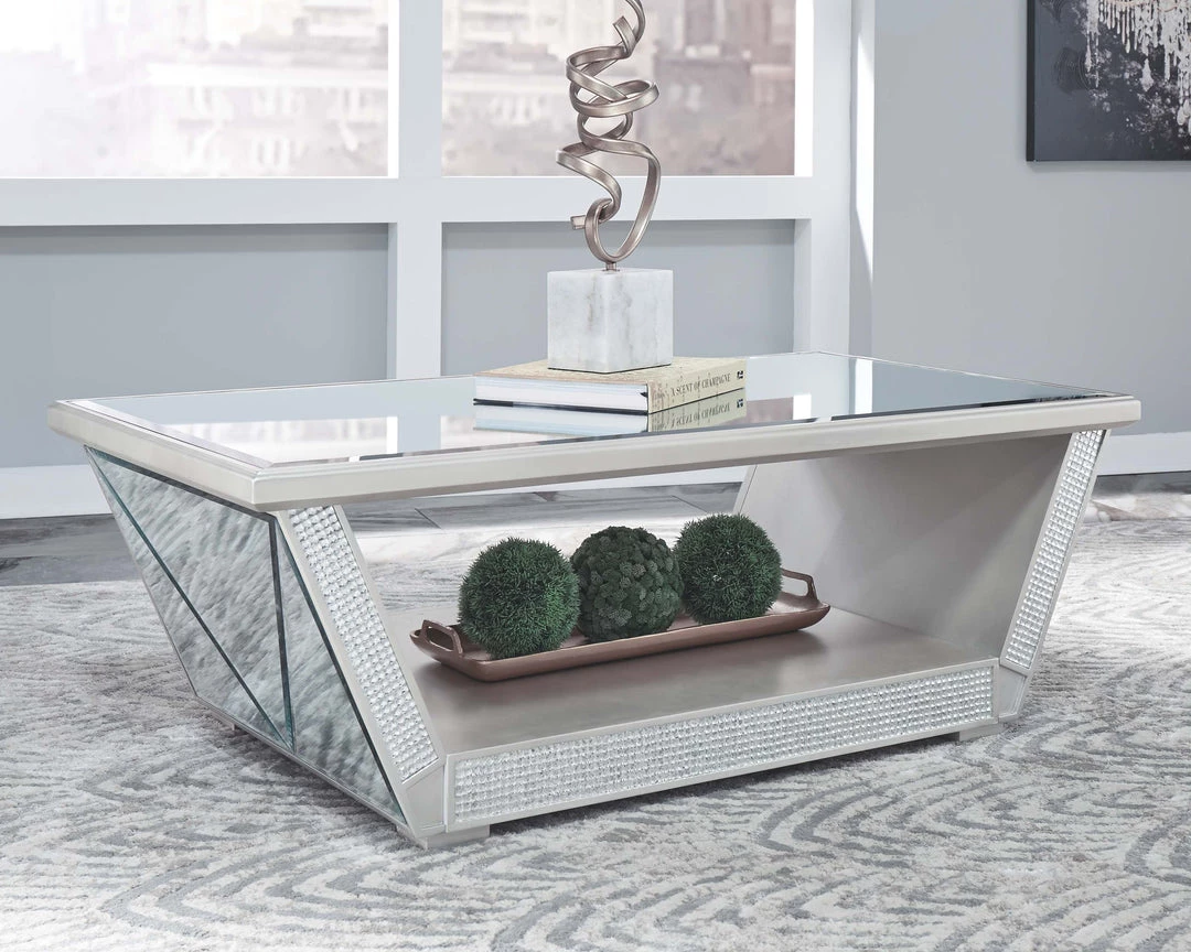 Fanmory – Silver Finish – Rectangular Cocktail Table