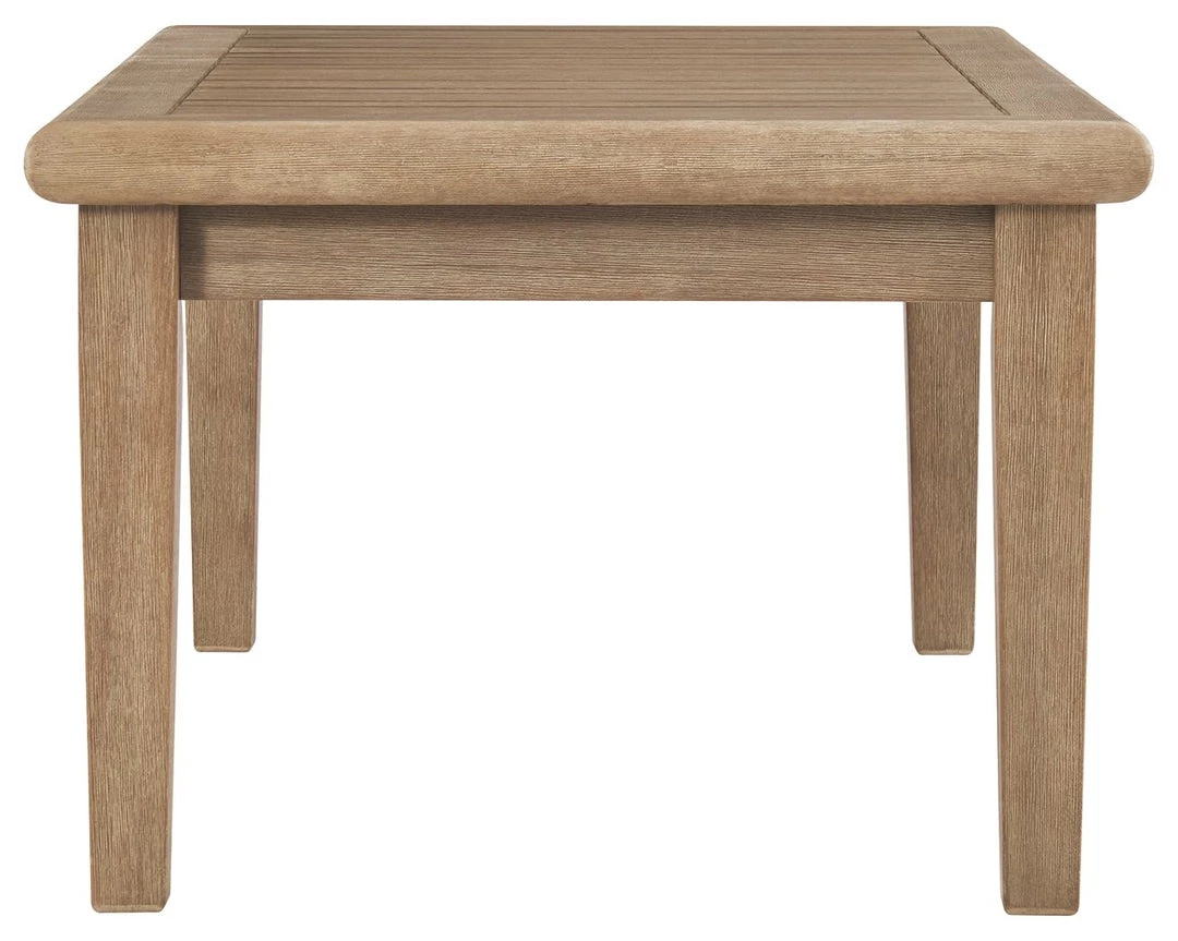 Discover a high style alternative to traditional outdoor furniture. With its antiqued teak-like finish, this solid wood coffee table definitely has the corner on style. Better yet, it has the edge when it comes to affordability. For that much more weather protection, the table’s eucalyptus wood frame with slat styling is treated to a 5-step finishing process.
