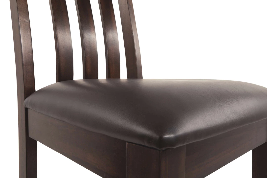 Take clean-lined, classic styling. Add modern comfort. Top with a deep, complex finish that exudes rich sophistication. That’s the look and feel of this dining room chair. Wide-slat, rake-back design with lumbar curve and cushioned upholstered seat make it complete.