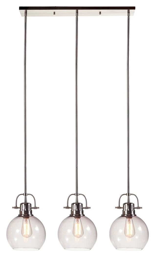 A steady glow from this glass pendant is perfect for shedding light on contemporary living. While three delicate gray glass shades cover the bulbs, silvertoned metal rods and caps form a sleek lantern-like look. The height of each light is adjustable with the addition or subtraction of rods.