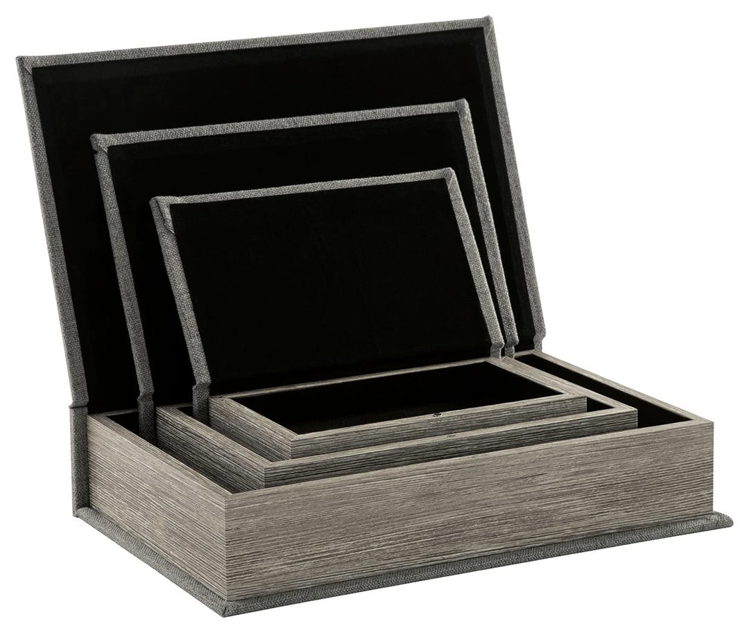 This set of three keepsake boxes makes storage so quietly understated. The cover is complemented inside with a black velvet lining. The perfect place for your dearest keepsakes, this set adds a touch of casual elegance to your decor.