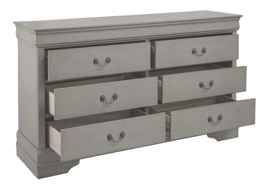 Ageless elegance isn’t far from reach with this dresser. The trend-right dove gray color provides a dash of modern style, while the antiqued bronze-tone hardware creates added drama. Six smooth-gliding drawers give you ample storage space in this masterfully crafted piece of furniture.
