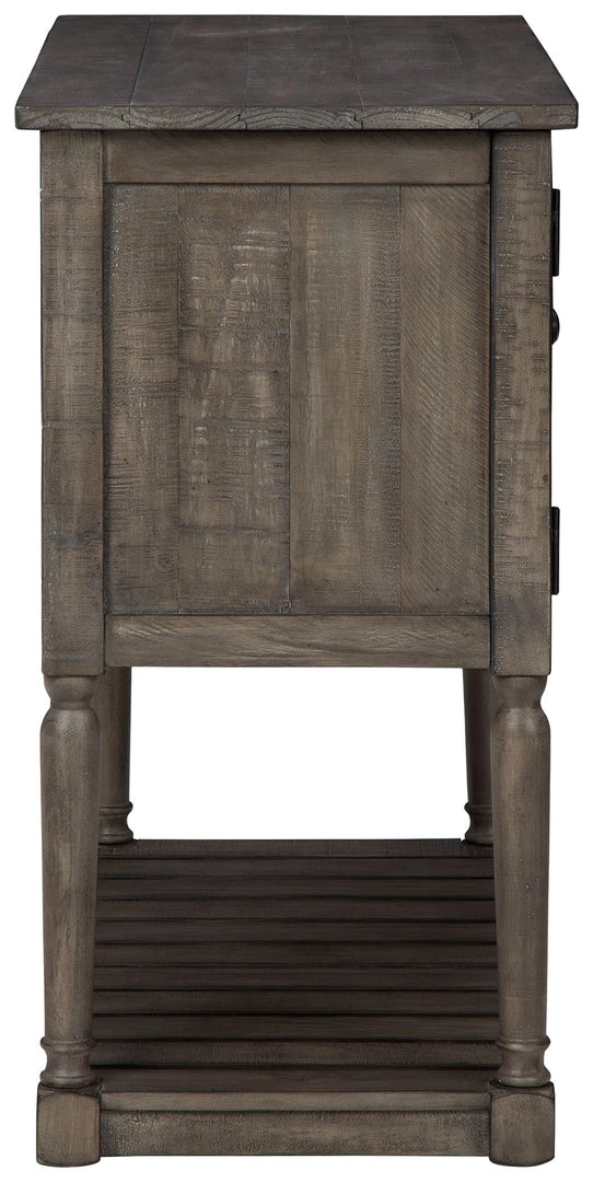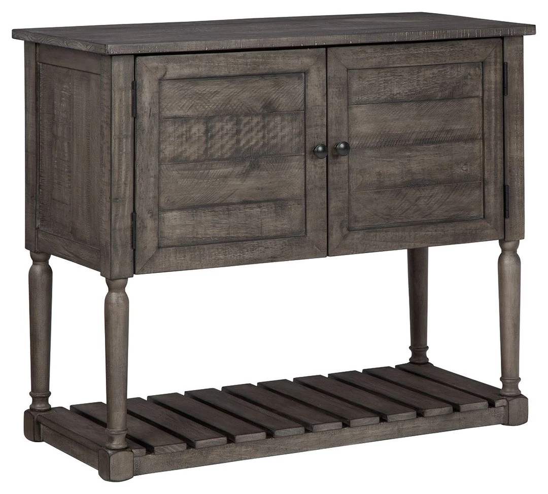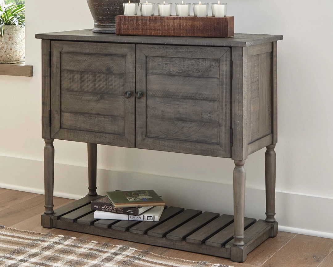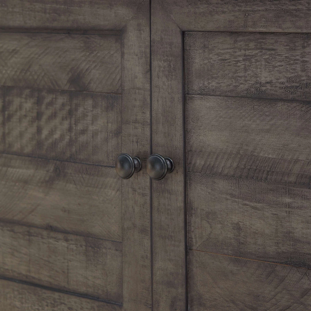 Storage and style are made easy with this accent cabinet. The plank door front and open air storage shelf bring a natural look, while pewter finished hardware adds an industrial touch. In an antiqued gray finish, this accent cabinet offers endless design possibilities.