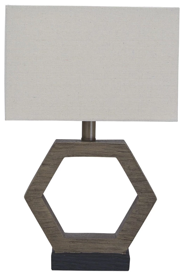 Who knew geometry could be so stylish? This table lamp’s hexagonal base sports a stunning gray washed finish over faux wood. Angular silhouette brightens up your space with the right amount of style and light.