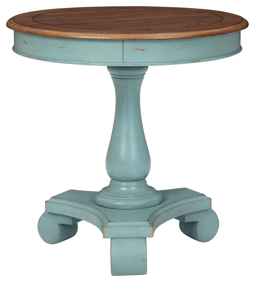 Achieve the vintage casual look you love with this accent table. A stylish addition with a simple design in antiqued teal and brown finishes, this accent table completes any room.
