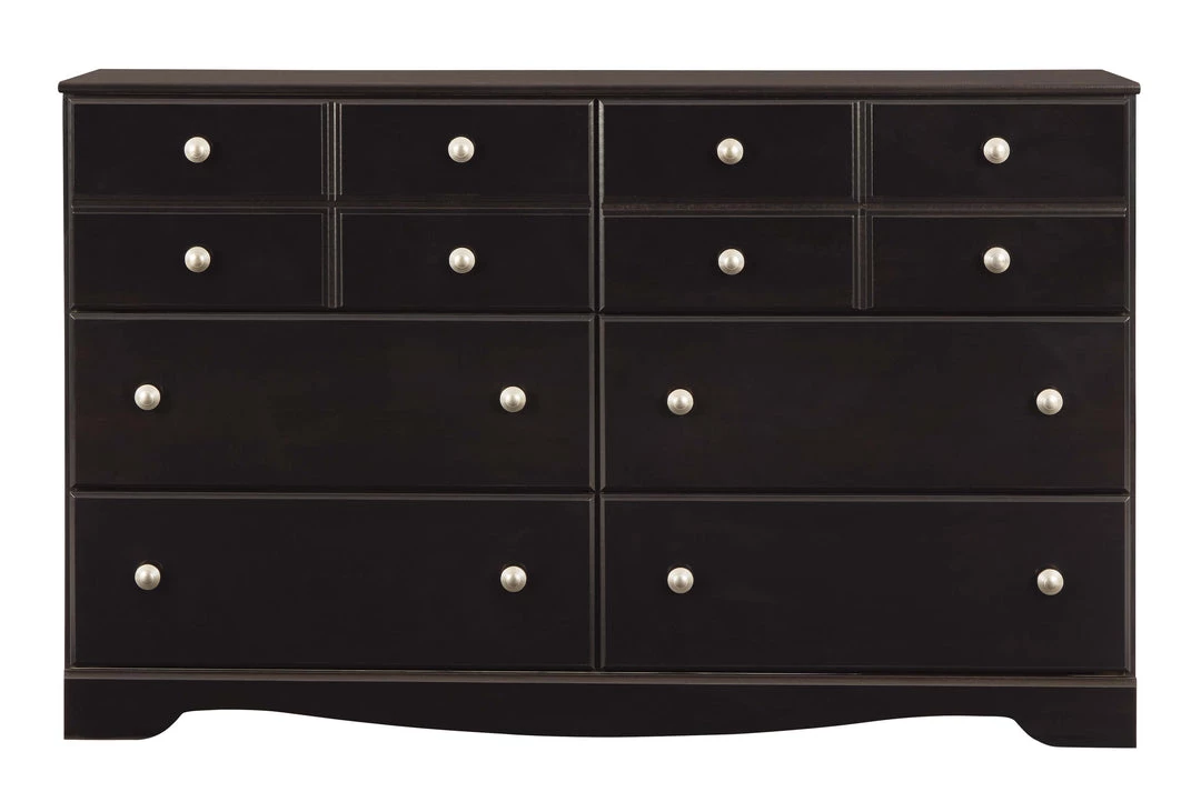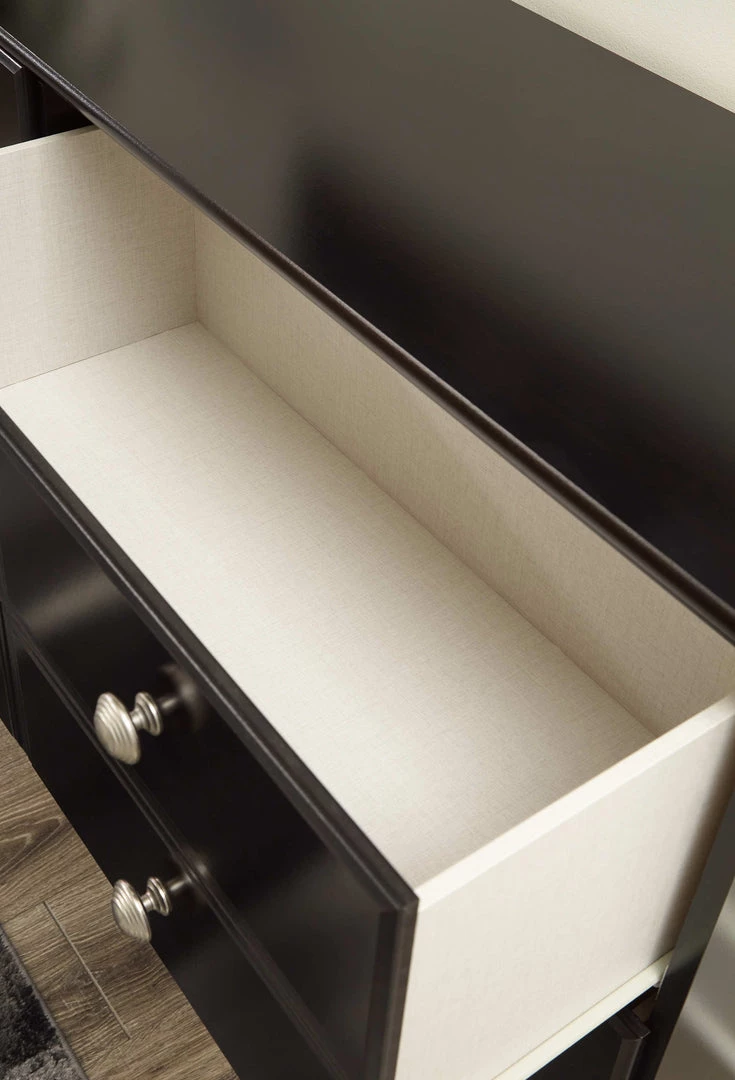 Satisfy your taste for casual refinement with this dresser. A rich almost-black finish and clean lines allow it to fit in with a variety of decor. The ample storage space of the six smooth-gliding, lined drawers brings function to sophisticated form. Satin nickel-tone knobs speak simplicity with style.
