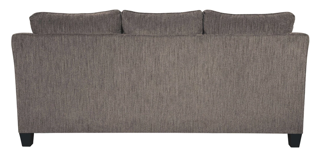 Set the scene for a modern space full of casual flair with this queen sofa sleeper. Its textured chenille with solid microfiber upholstery provides a luxuriously soft feel that’s inviting. Gently flared arms and plush seat cushions welcome comfort and relaxation. The on-trend slate-colored upholstery offers a perfect background for the four decorative pillows to pop with beauty. Pull-out queen mattress in quality memory foam comfortably accommodates overnight guests.