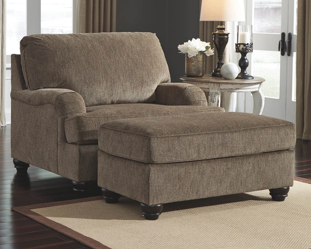 Tell your interior style story with this sophisticated ottoman. Turned feet are charming touches. Speaking of touch, you’ll revel in the softness of its texture. Impressive comfort of the deep, plush cushion is sure to bring you joy.