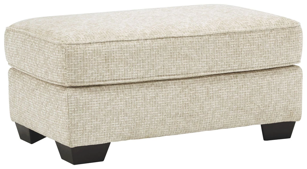 Wrapped in a soft, chunky weave fabric loaded in texture, this ottoman invites you to relax and get comfortable. Light and lovely ivory upholstery makes for such an easy-breezy blend. Generous scale is abundantly practical.