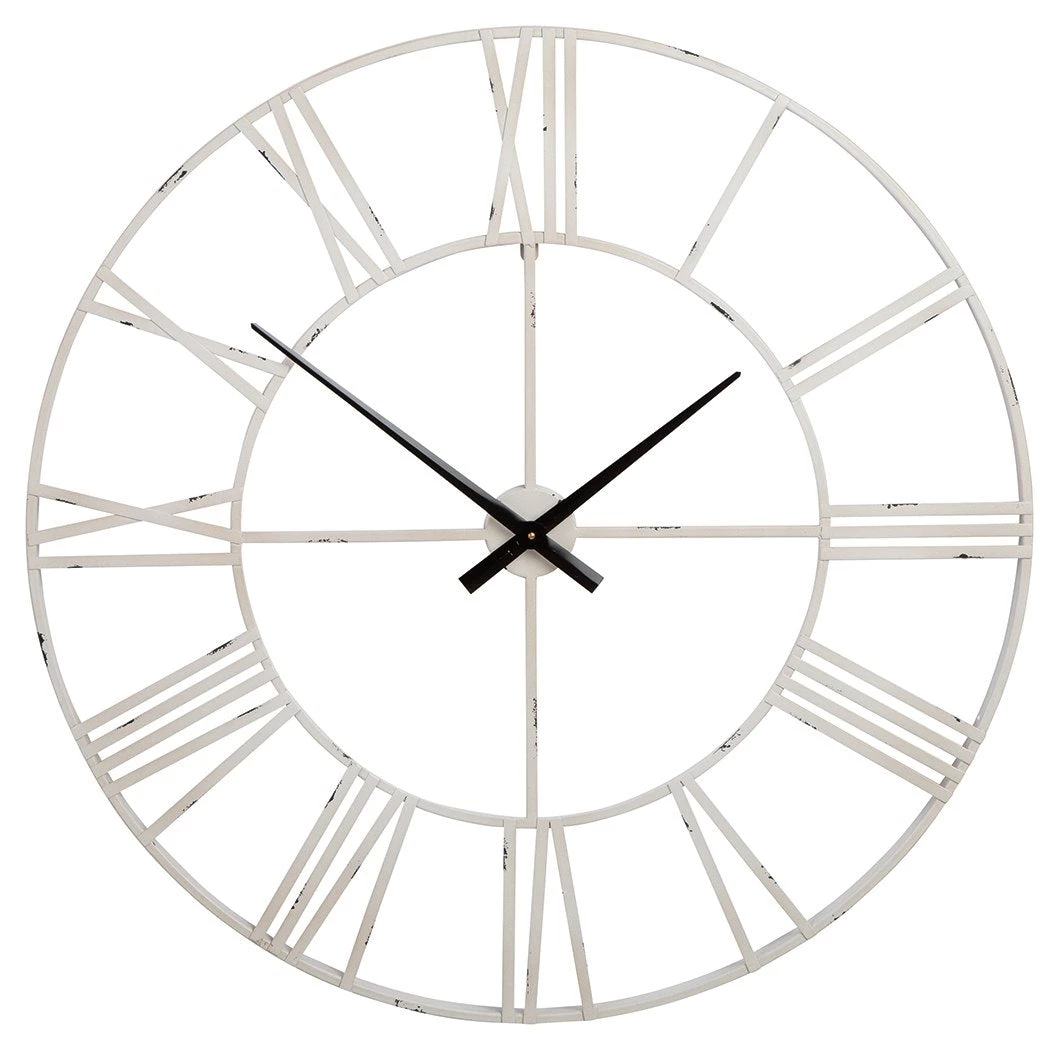 Casual style meets practical function with this wall clock. Roman numerals are easy to read on the sleek metal frame in an antiqued white finish. Keeping track of time has never been so stylish.