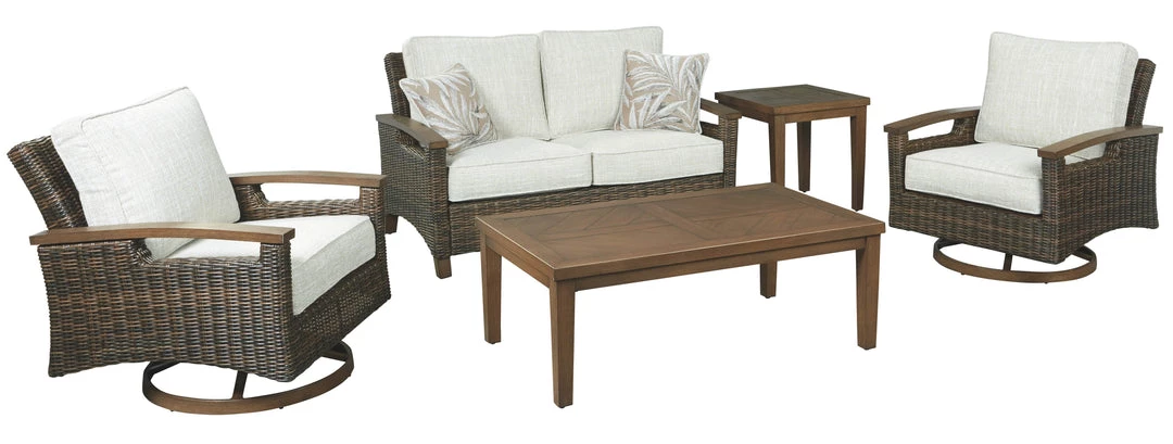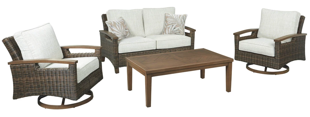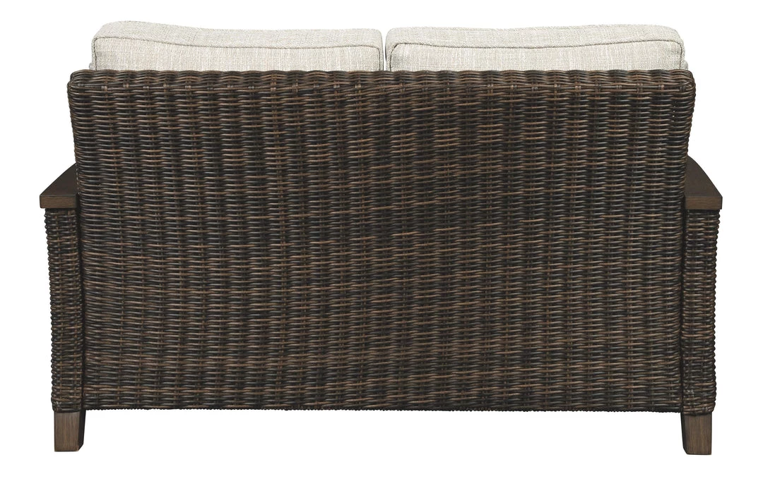 Pretty enough for trendy interiors, yet durable enough to weather the elements, this outdoor loveseat rises to the challenge beautifully. Handwoven resin wicker over rust-proof aluminum merges high style with low maintenance. Rest assured, though the exposed armrests and feet look remarkably like wood, their sturdy aluminum construction is perfectly suited for al fresco living. Plush seat cushions and throw pillows wrapped in high-performing Nuvella® fabric aim to please.