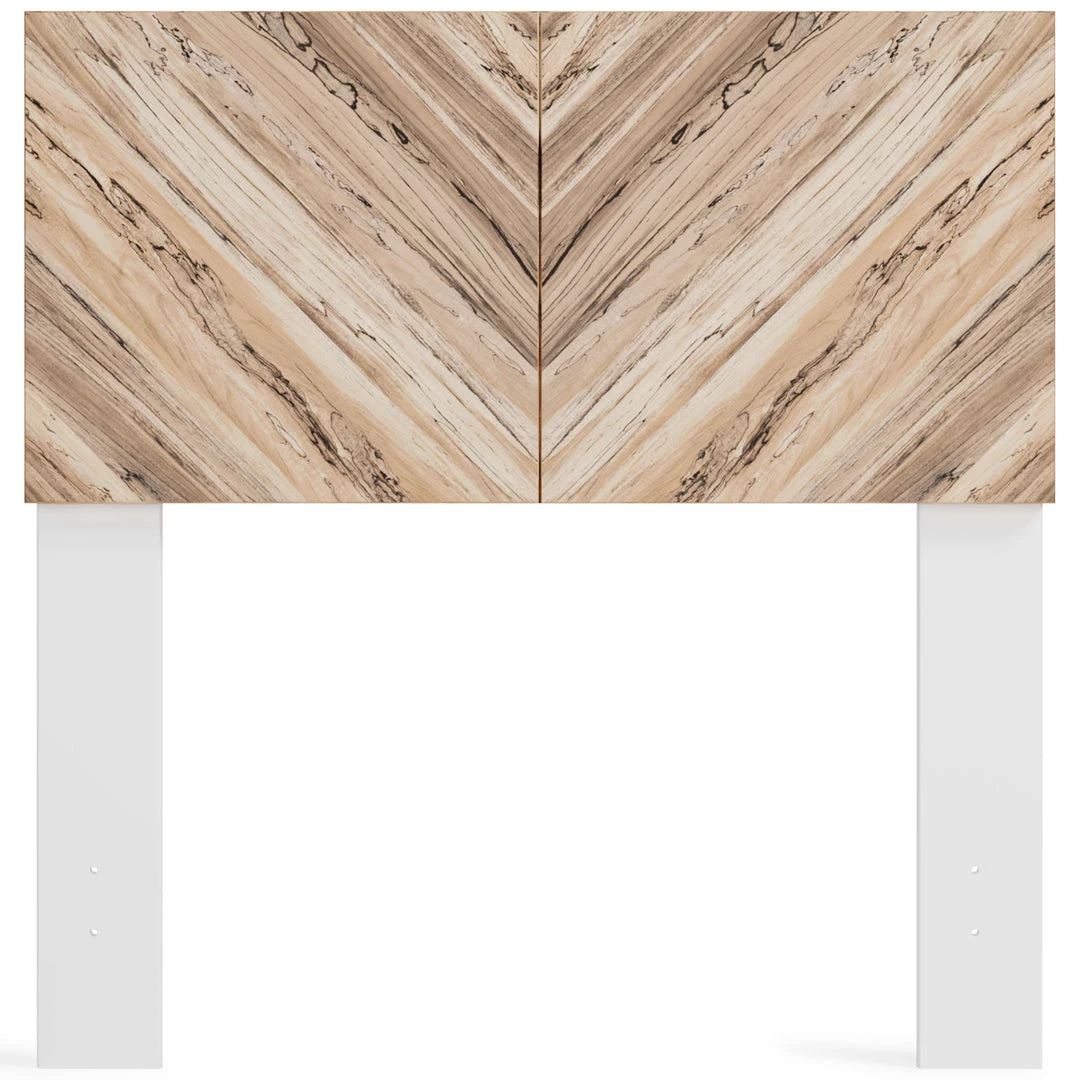 The perfect marriage of contemporary and casual style, this twin panel headboard is a charming addition to your home. This headboard is expressive with its warm and inviting replicated sugarberry wood grain pattern.