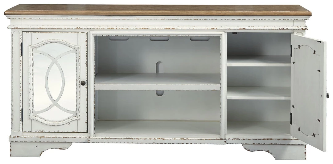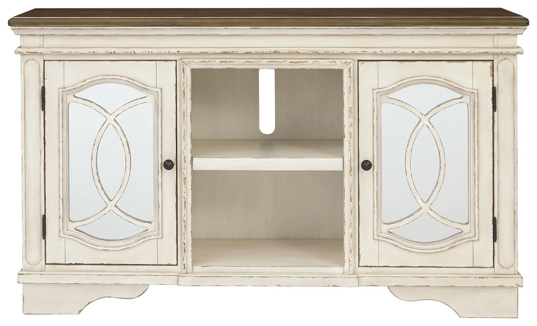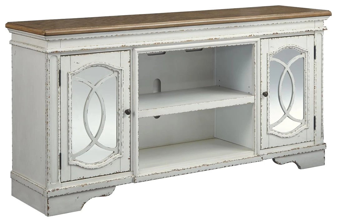 Realyn – Chipped White – Xl Tv Stand W/fireplace Option