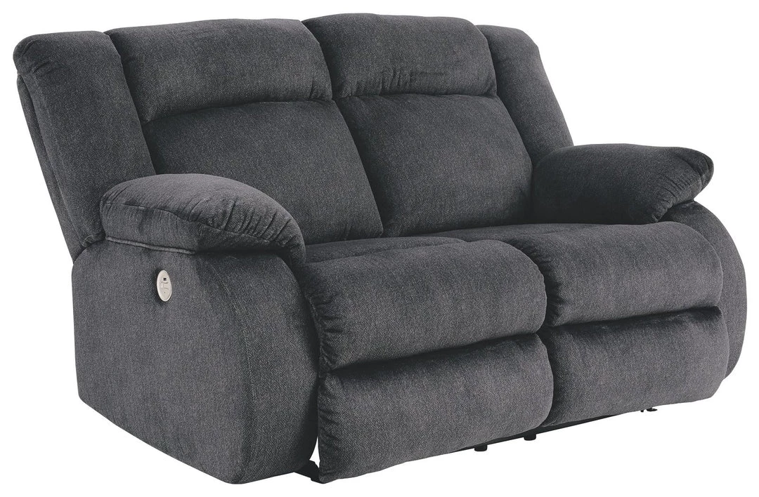 If highly contemporary looks and a heavenly feel sit well with you, rest your eyes on this reclining power loveseat. Padded velvet upholstery has a plush high pile that’s so soft to the touch. Jumbo contrast stitching adds fashion-forward flair, while radius cut arm frame incorporates cool, curvaceous interest. At your fingertips: one-touch power control with a zero-draw USB plug-in that’s not only convenient but also energy efficient. When it comes to high style at a down-to-earth price, this power reclining loveseat really brings it home.